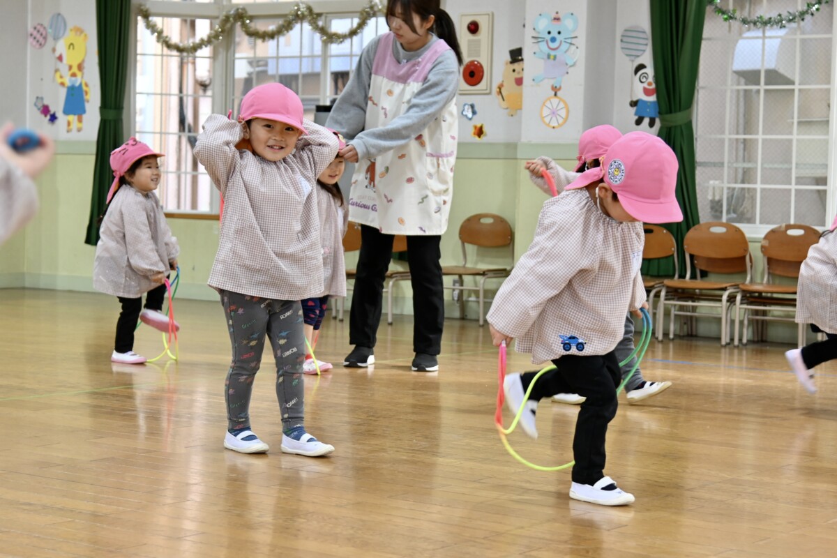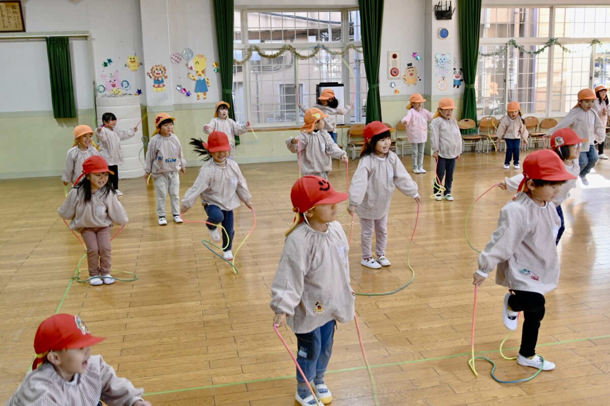 年少組は縄跳び大会こそありませんが、今から跳べるようになることで大きな自信になります。また縄跳びは全身を使った動きで、寒い日にはすぐに体が温まります!もうすぐ始まる冬休み、ぜひ遊びの一つに取り入れてみてくださいね♡