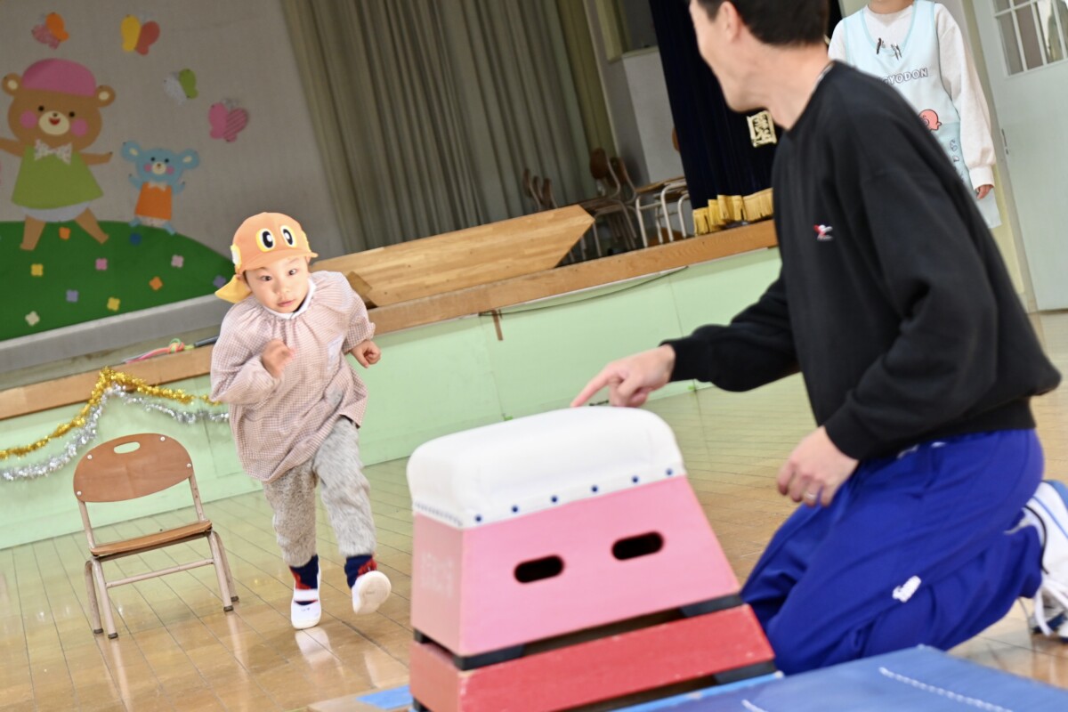 岡田先生は未就園児体操教室『ぱわふる』も担当していて、ひよこ組はそちらに一緒に参加しています✨ひよこ組・年長組の運動遊びの様子は、また次の機会に紹介しますね☺️