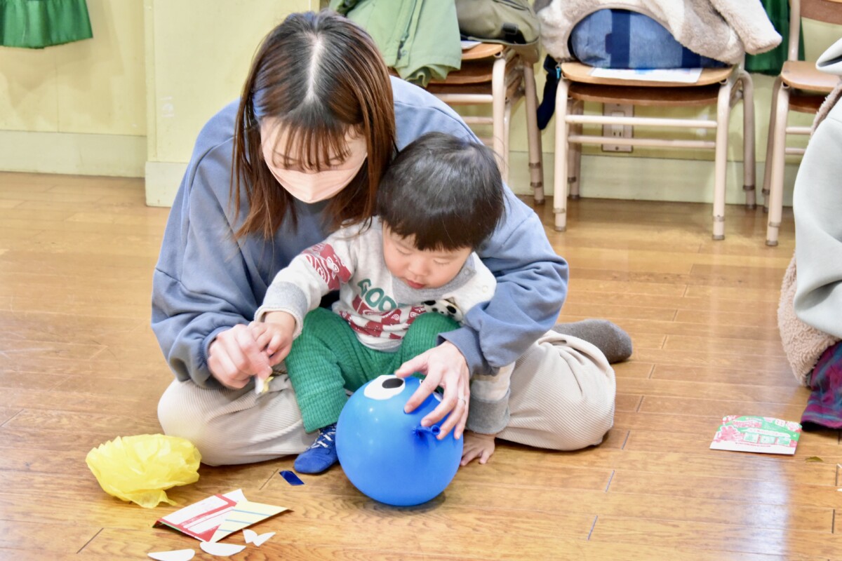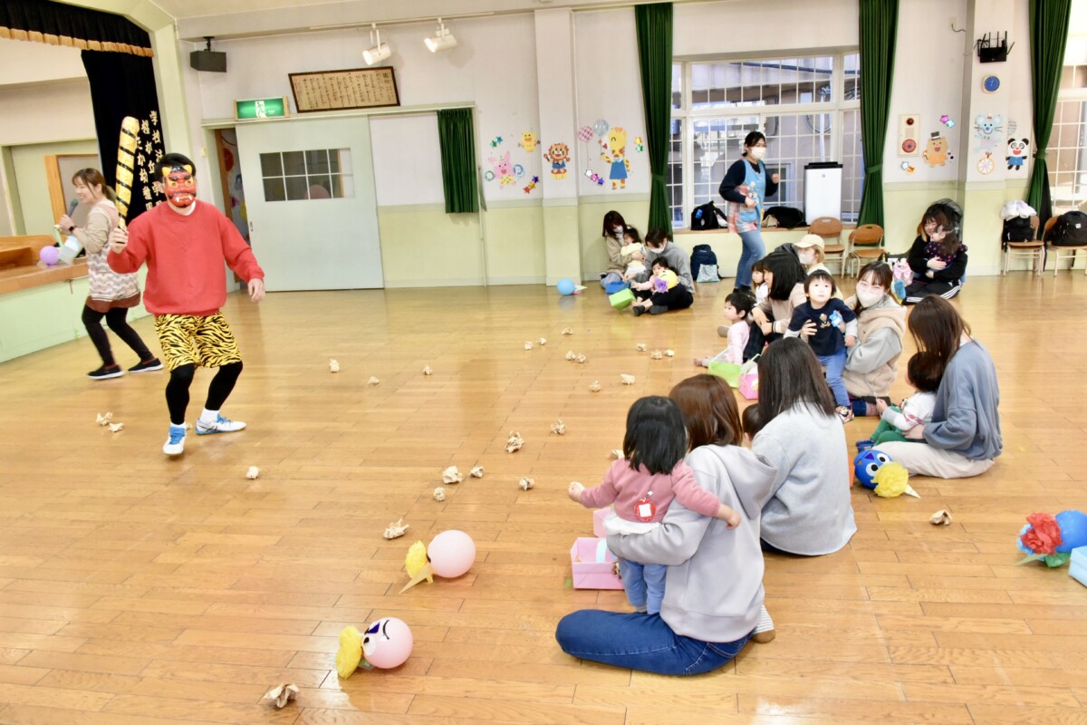 今日は、未就園児教室”ちびっこひろば”で、豆まきを開催⭐️まずはゆうだい先生と体を動かして体操をした後、風船を使った遊びを親子で行いました🎈♡