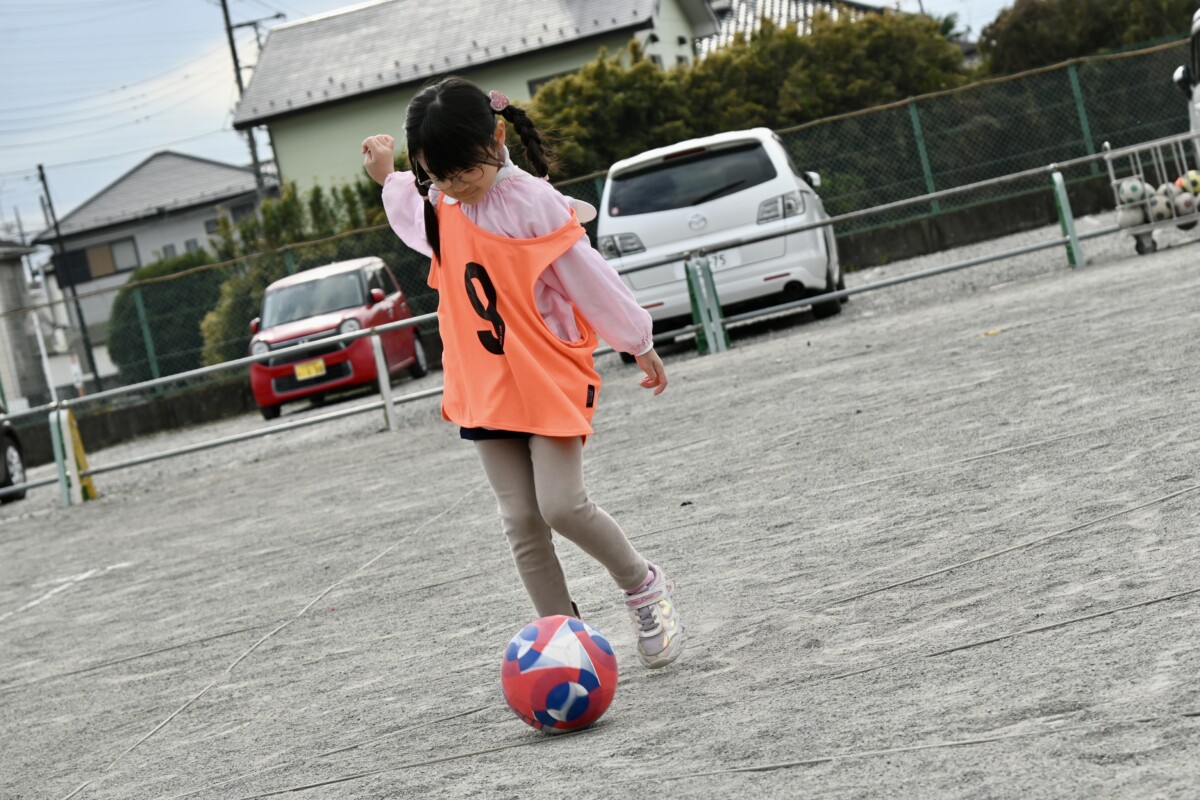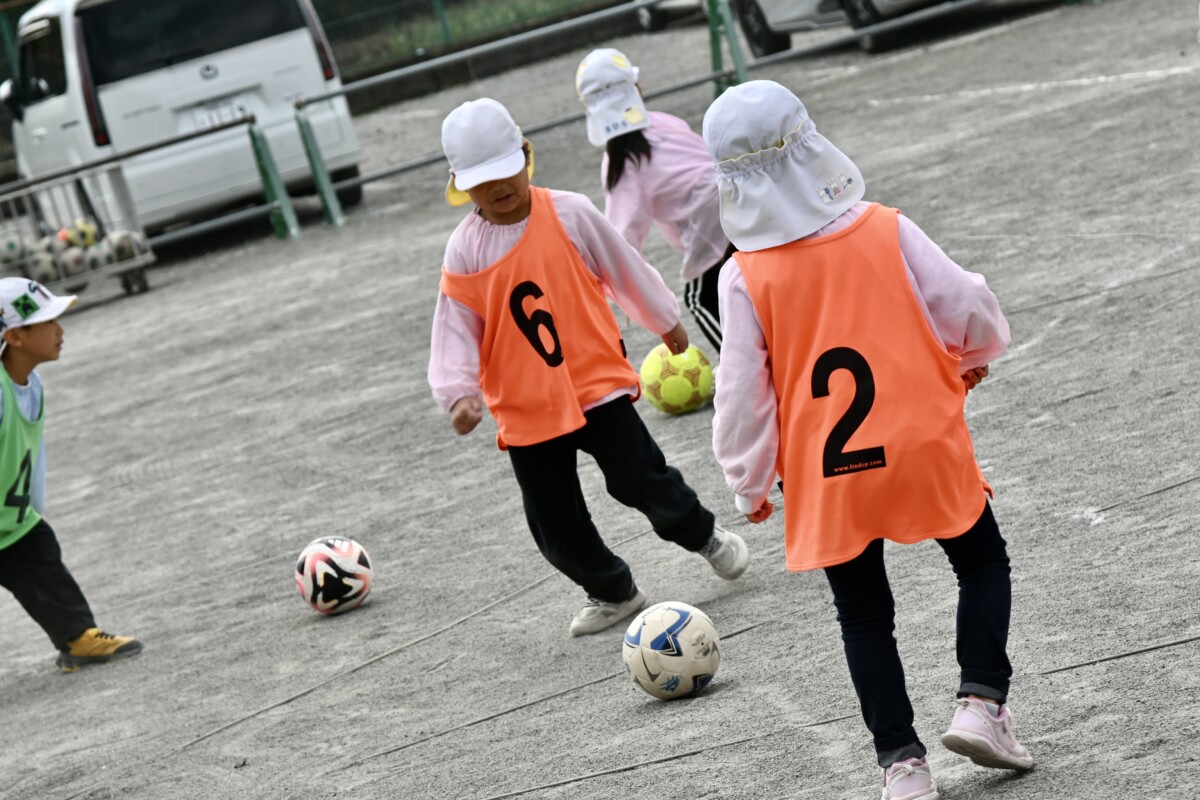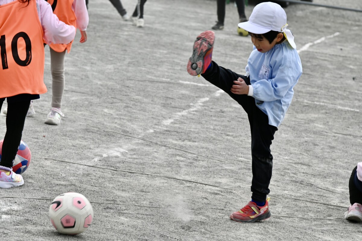 射的のように的を狙って・・・シュート!!✨見事命中してコーンが倒れると、飛び跳ねて喜ぶ子もいました🎵最後はチームに分かれてミニゲーム⭐️