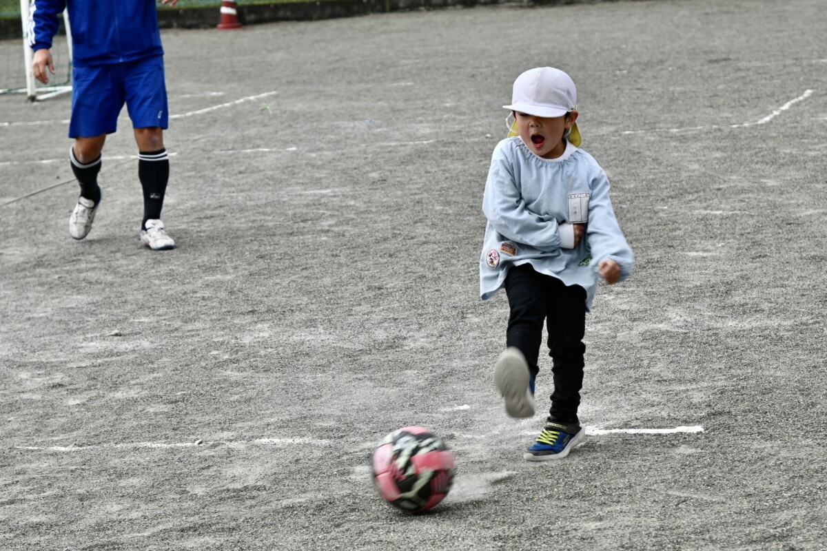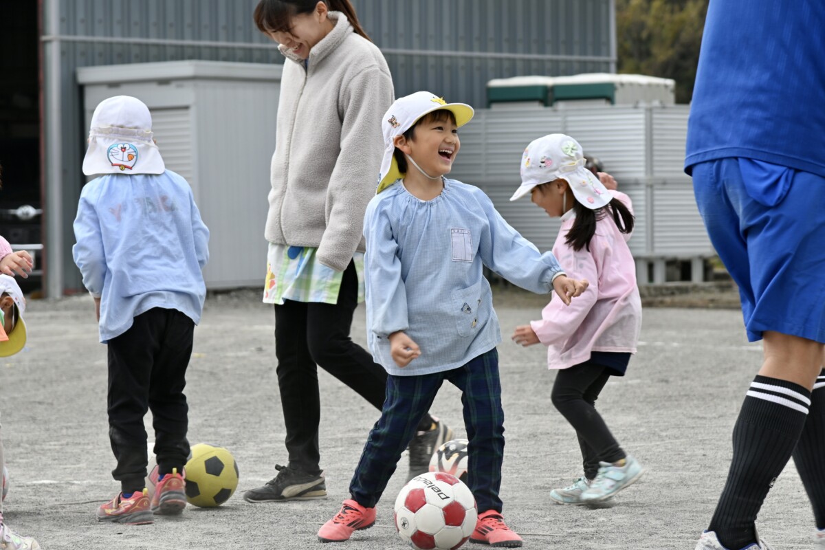 準備体操から気合十分!!普段の運動遊びは岡田先生なので、川北先生との活動は子どもたちも新鮮な気持ち✨その上”サッカー”という特別内容なので、子どもたちはとっても嬉しそうでした♡