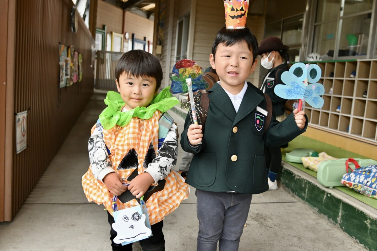 写真はありませんが日中、かぼちゃの仮装をしたひよこ組のお友だちが「トリックオアトリート!!」と、お兄さん・お姉さんたちのクラスをまわっていました🎵