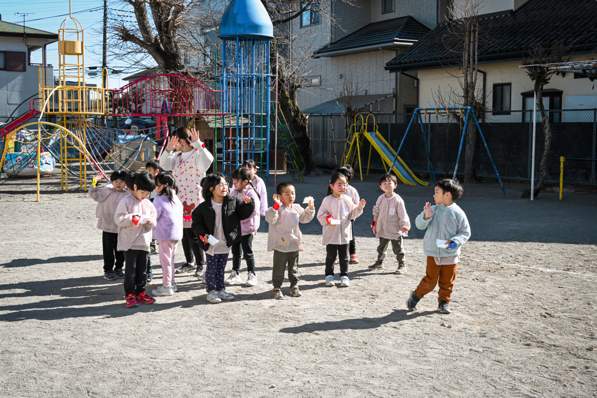 最後は無事に鬼を撃退することができ、逃げていった鬼さんたちを「もう来ないでね!」と見送りながら、ほっと一安心の子どもたちでした♡よかったね✨