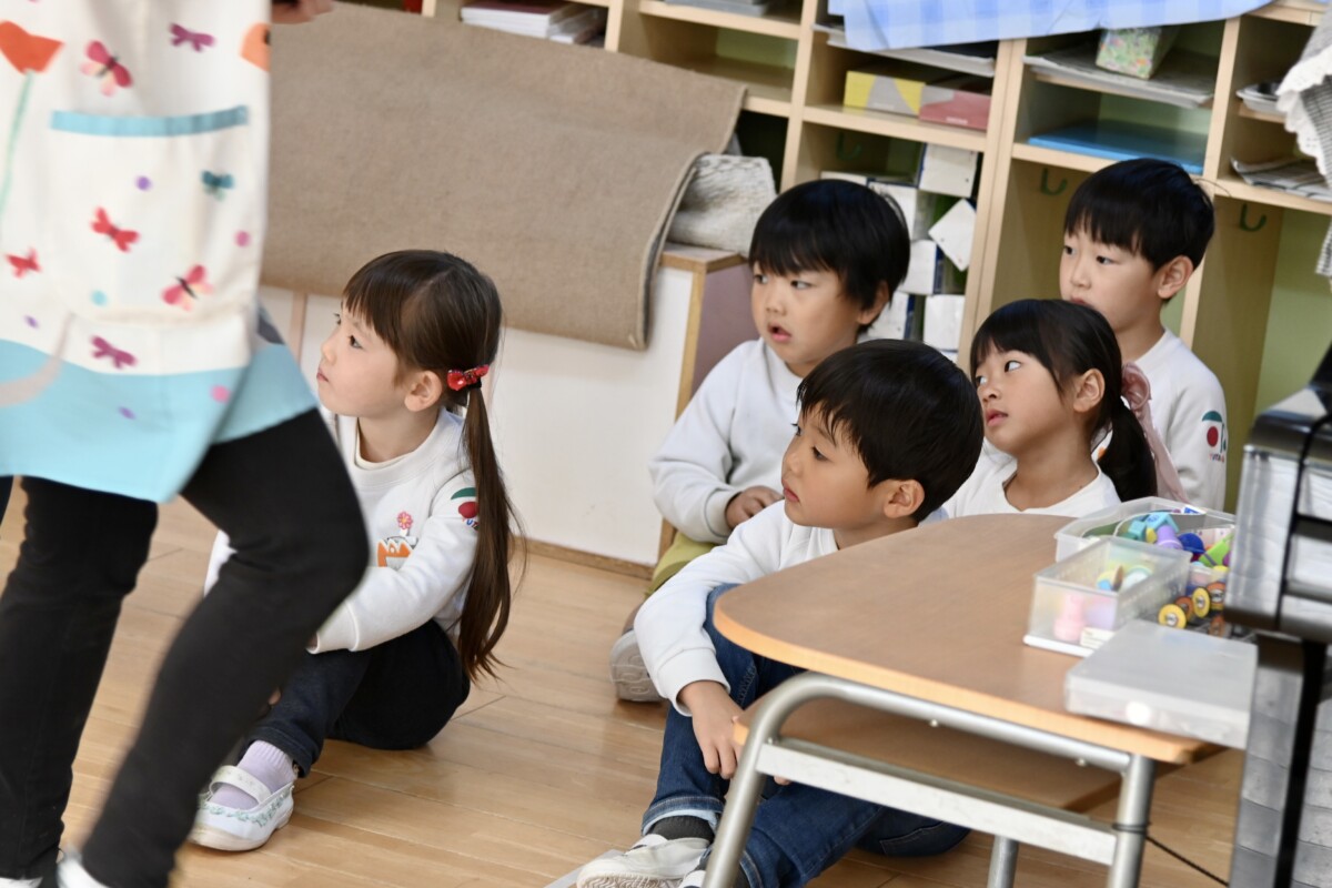 すでにご周知の通り、幼稚園では1月の発表会に向けて、本格的な練習がスタートしました☆日中事務室にいると、それぞれ役になりきって伸び伸びと演じる声や歌声など、元気いっぱい聞こえてきています🎵今日はそんな日中の活動を覗きに、各クラスを回ってきました⭐️タイミングによって、発表会の練習ではない活動をしているクラスもありますが、様々な取り組みをしている子どもたちの姿を少しずつですがご覧ください☺️