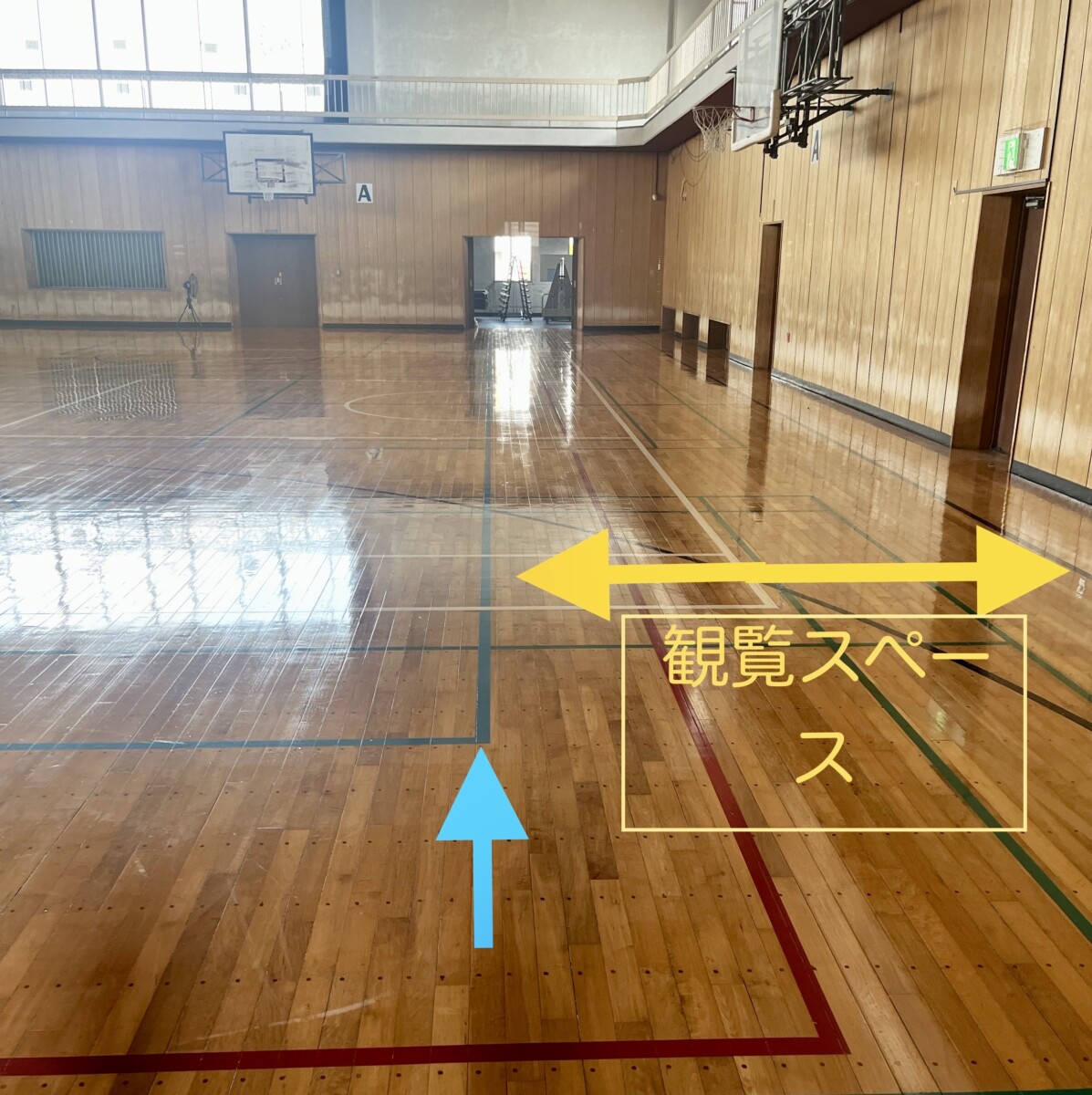 ・観覧スペースは、水色のラインより後方(壁側)になります。