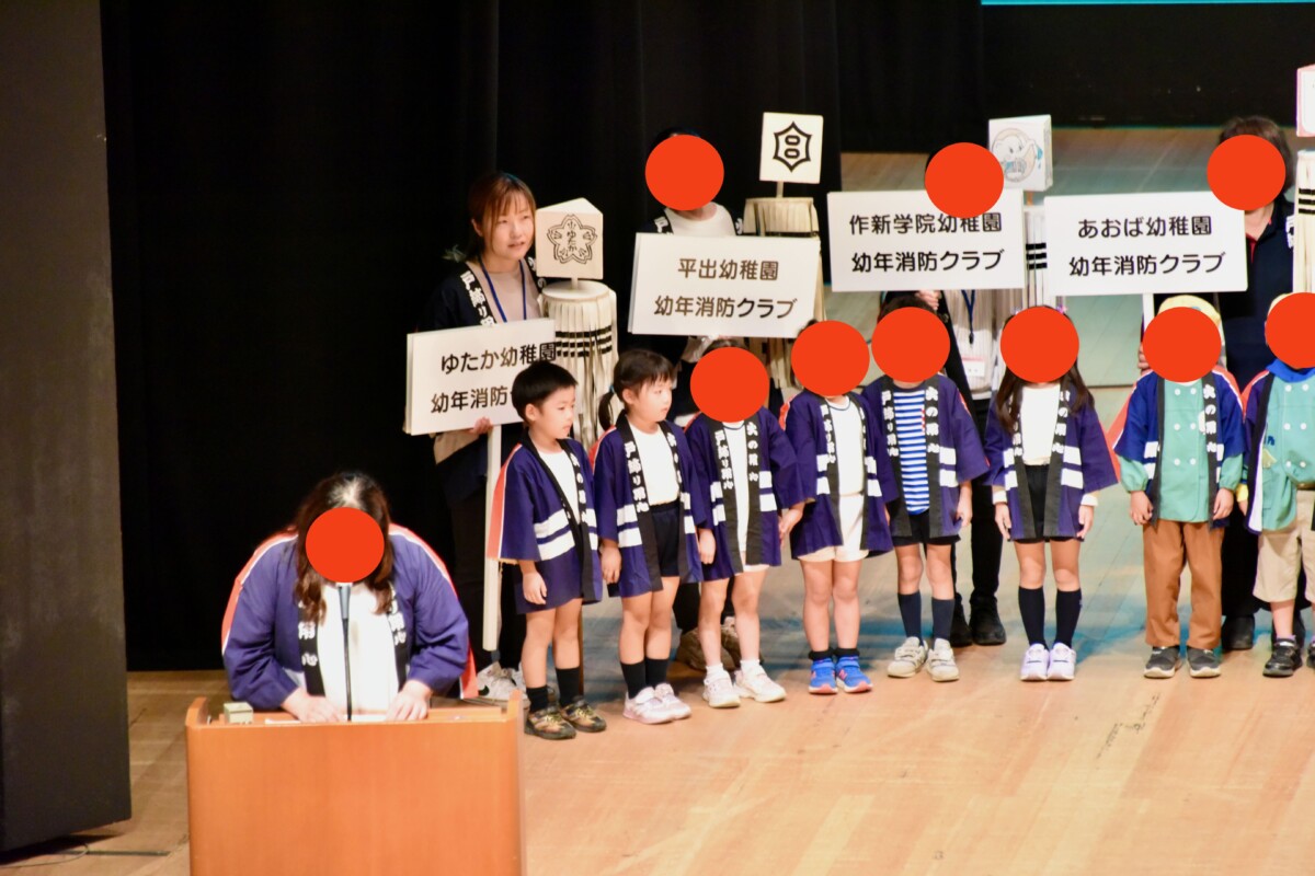 代表のお友だちは、他の幼稚園・認定こども園のみんなと一緒に舞台に登り、『ぼくたち私たちは絶対火遊びはしません』のお約束も行いました⭐️