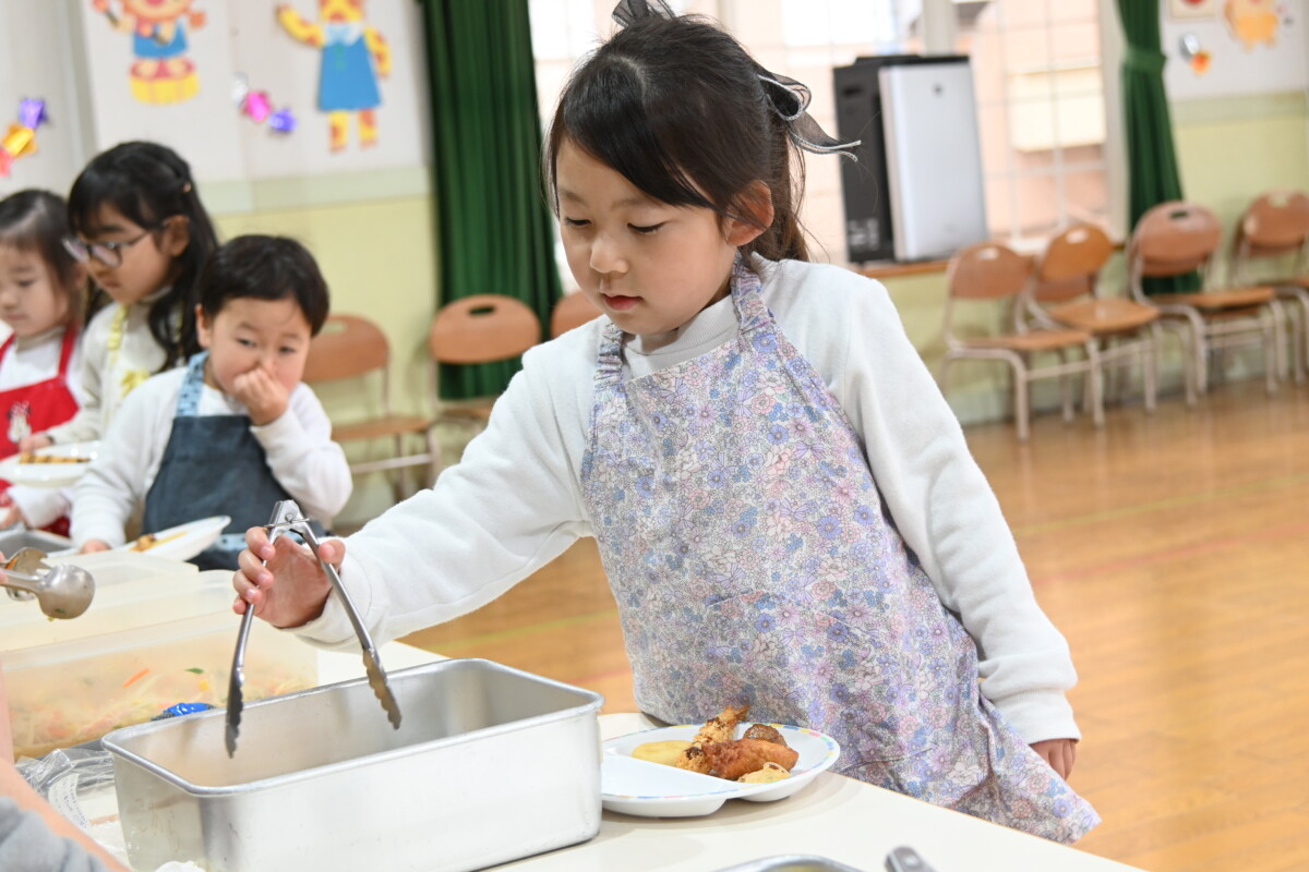 🍴バイキング給食(中少ひよこ)🍴 2026.02.27 昨日は年少組、今日は年中・ひよこ組がホールでバイキング給食を行いました🎵 バイキング給食については、前回年長組の際にお伝えしたので、今日は写真のみの紹介です✨ブログでは紹介しきれないものは、フォトギャラリーにアップされますので、そちらもご覧ください♡ 〜昨日・今日の給食〜