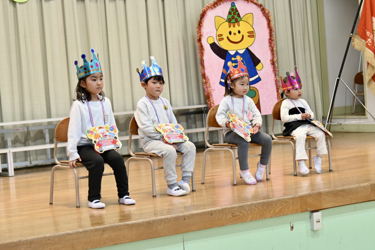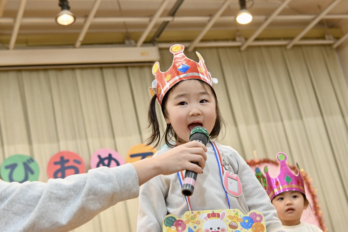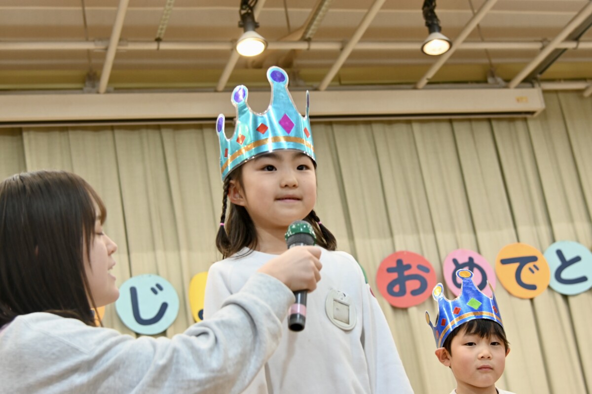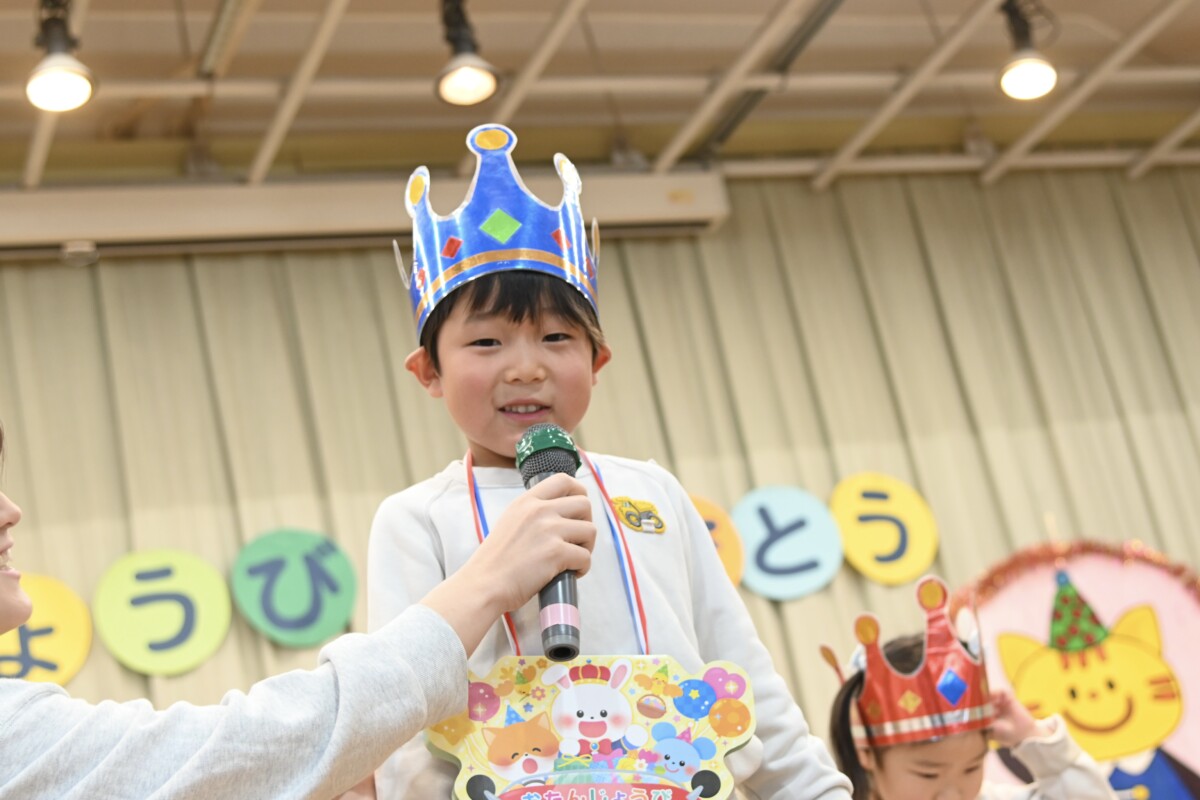 少し恥ずかしそうにしながらも、マイクで自分の名前と「ありがとうございます!」のお礼を、しっかり言うことができました✨舞台下にいるお友だちからも「おめでとう!🎊」の温かい拍手とお言葉が聞こえてきていました🎵