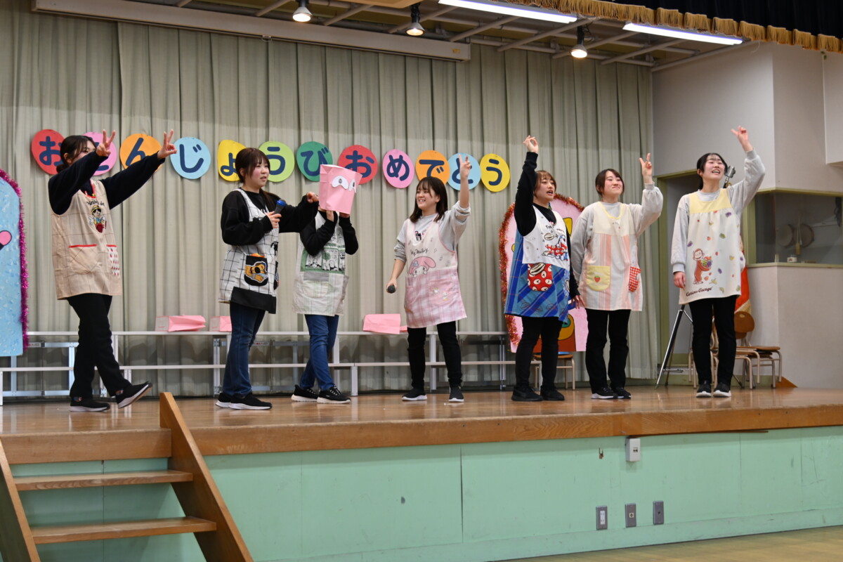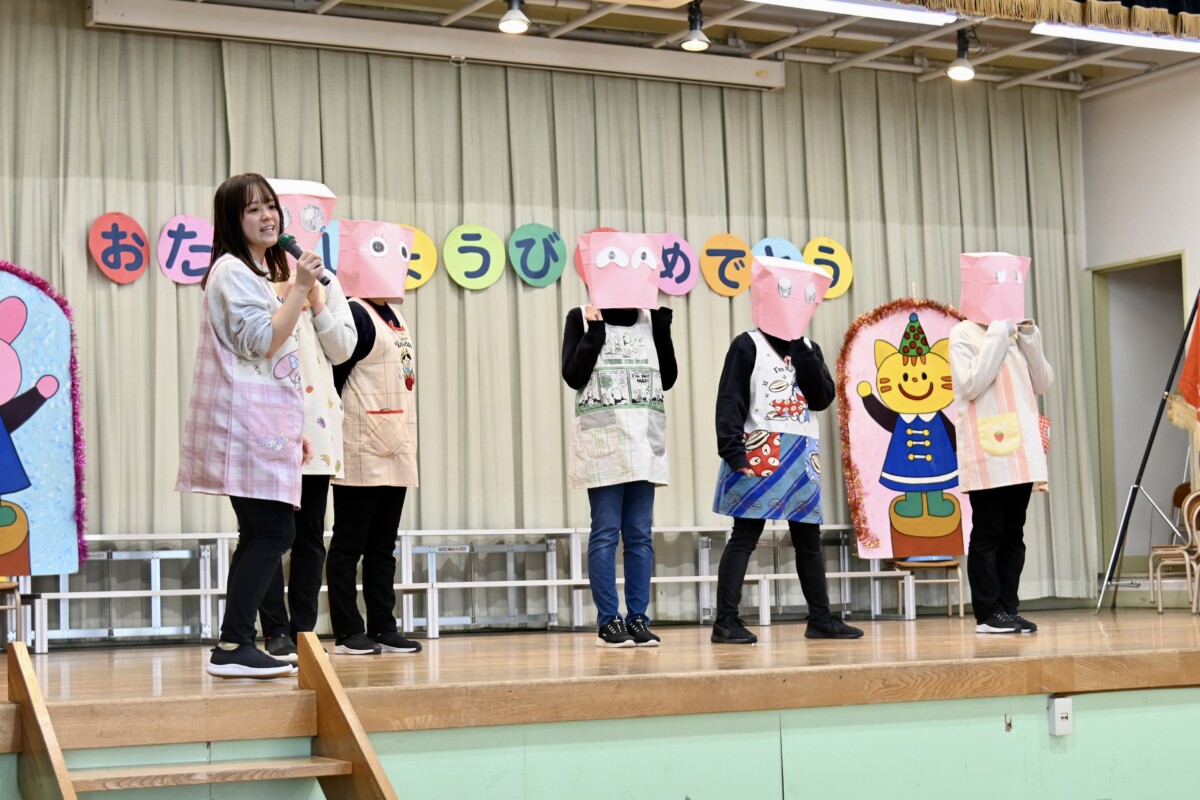『先生たちの出し物はなし』で始まった3月生まれのお誕生日会ですが、思ったよりも早く終わり時間が余ったので、急遽先生たちの出し物をやることに✨