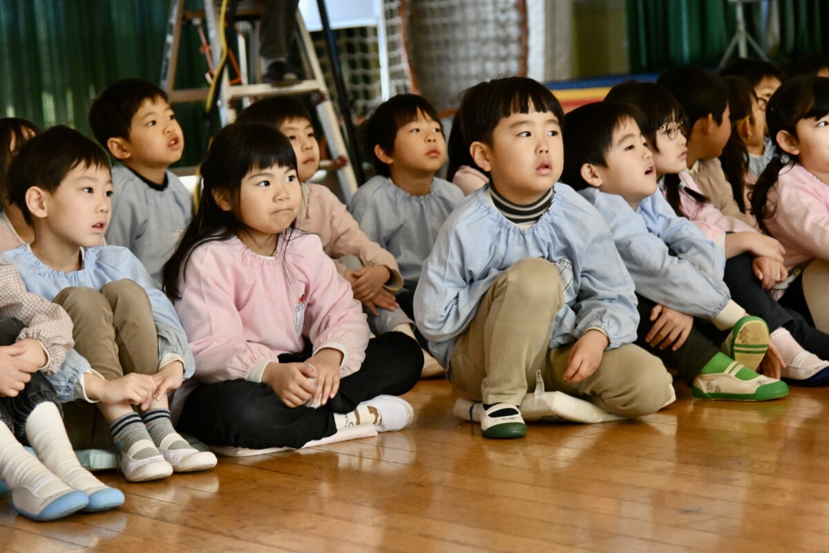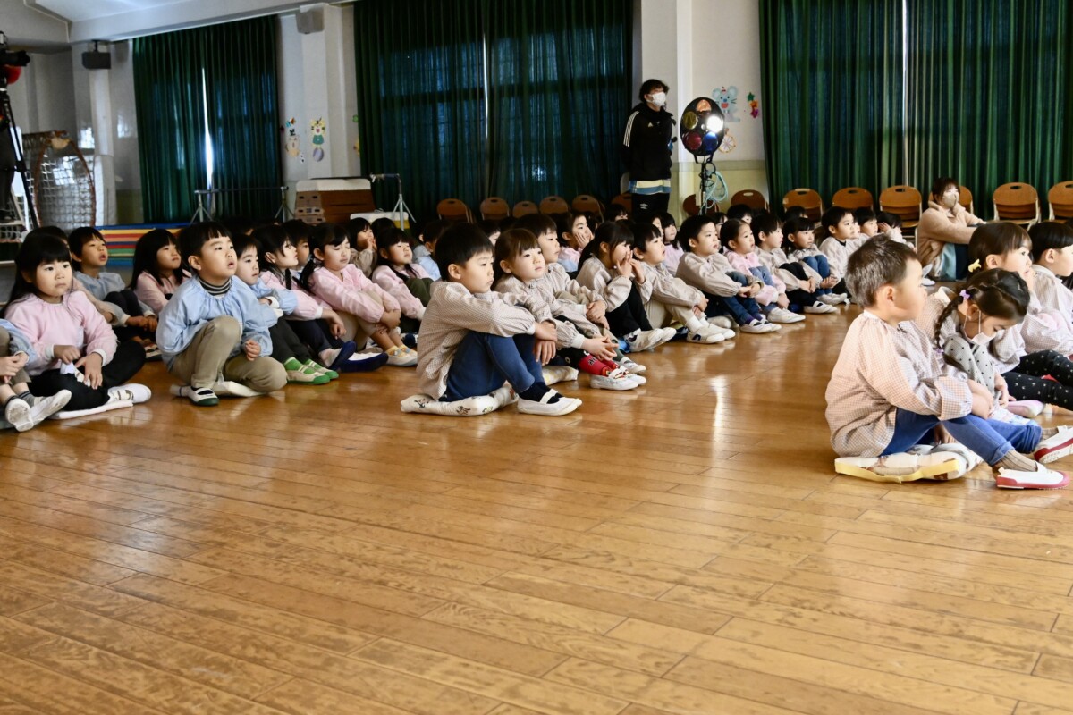 次のクラスの準備ができるまでは、先生と一緒にクイズや手遊び、簡単なゲーム遊びなどをして待ちます🎵でも発表が始まると見ているお友だちも集中!!✨自分たちも舞台に立つドキドキがわかるからこそ、お友だちの発表にも静かに耳を傾け、応援する気持ちで鑑賞していました☺️