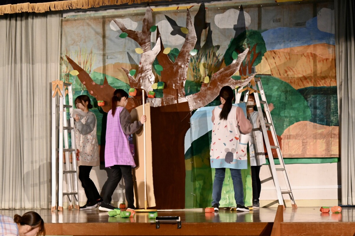 子どもたちの力を信じて、舞台下から見守ります☺️お客さんを前にドキドキして台詞を間違ってしまったりすることもありますが、目の前の先生とアイコンタクト✨信頼関係が垣間見える瞬間もあります☆そして発表中は、担任の先生だけでなく他の先生たちもサポートをします!担任の先生から伝達されたことを台本を見ながら間違えないように・・・総練習はそんな先生たちにとっても練習の場★実際に本番と同じようにやってみるとうまくいかないことや改善した方がいいところなども見えてくるので、本番前の貴重な時間となっています🎵