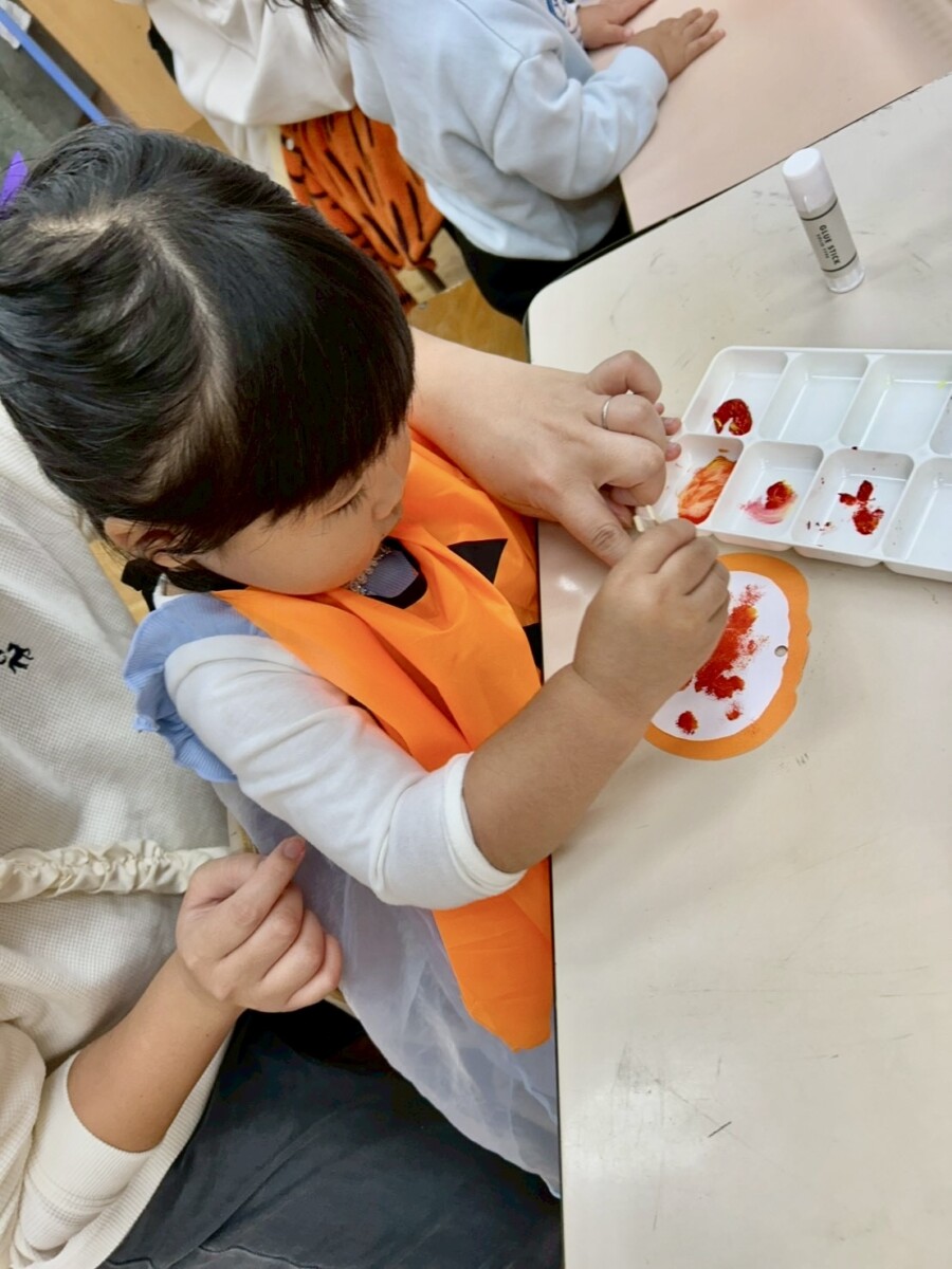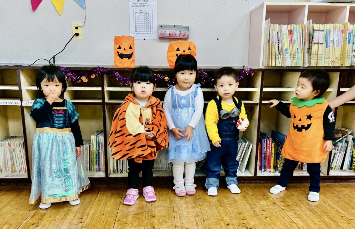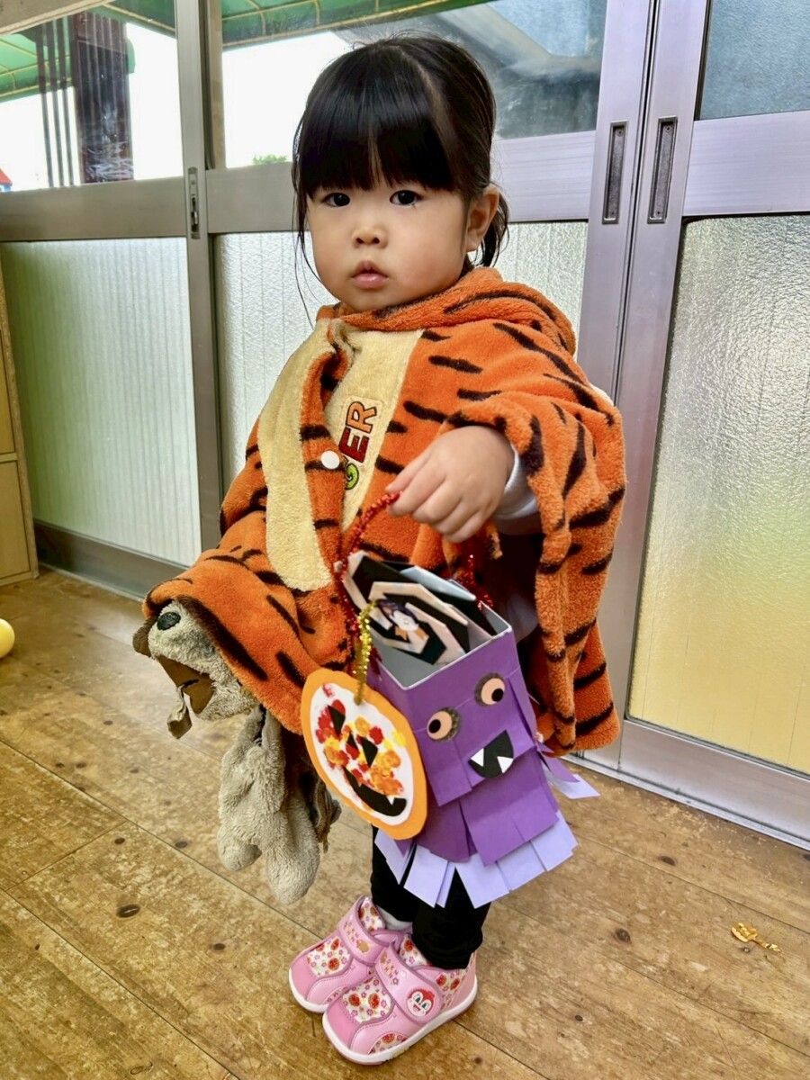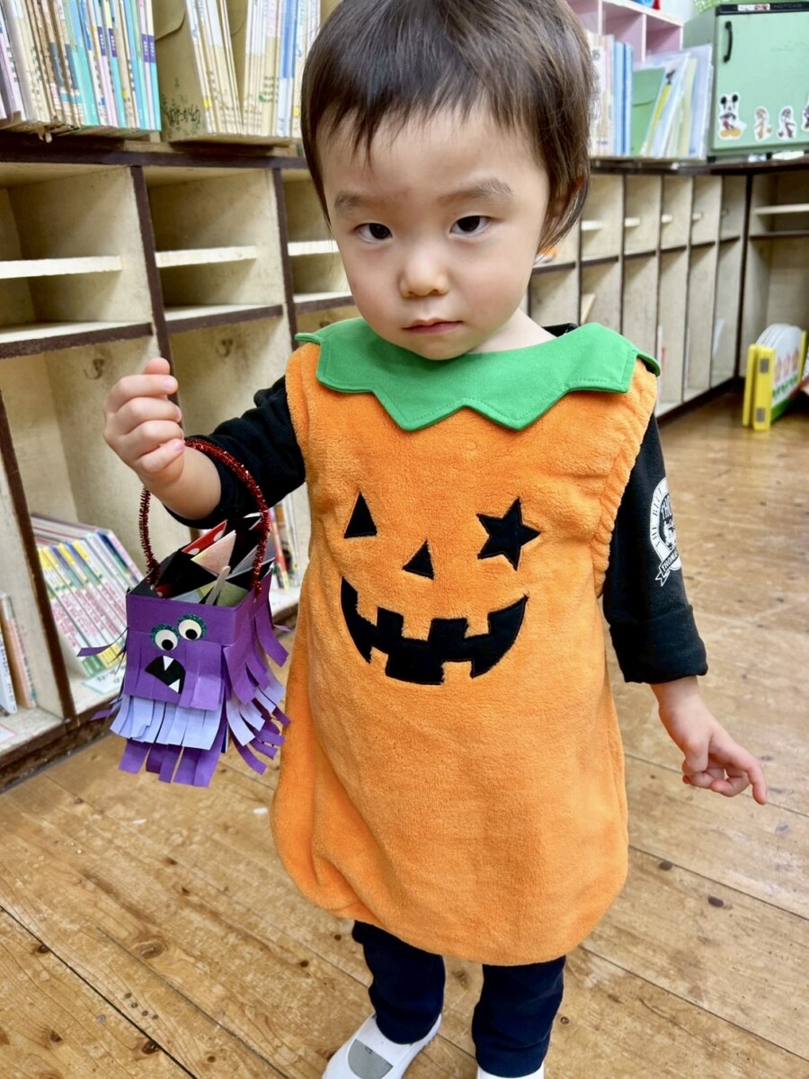 ↑この日はおうちの人も一緒に『ハロウィン制作』といことで、可愛い仮装をして登園してくれました🎃💕
