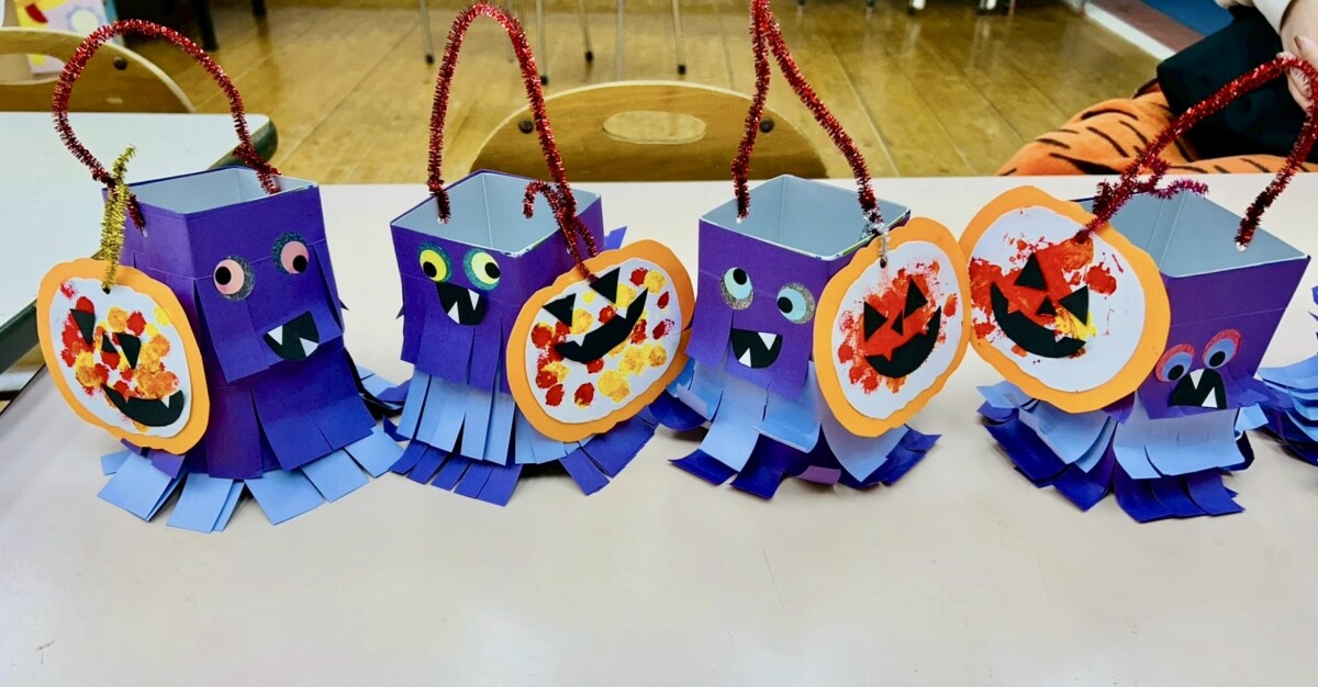 おうちの人が一緒だからできるハサミや絵の具を使って、ハロウィンバックが完成!!👻💕素敵な仮装にぴったりのバックですね🎵