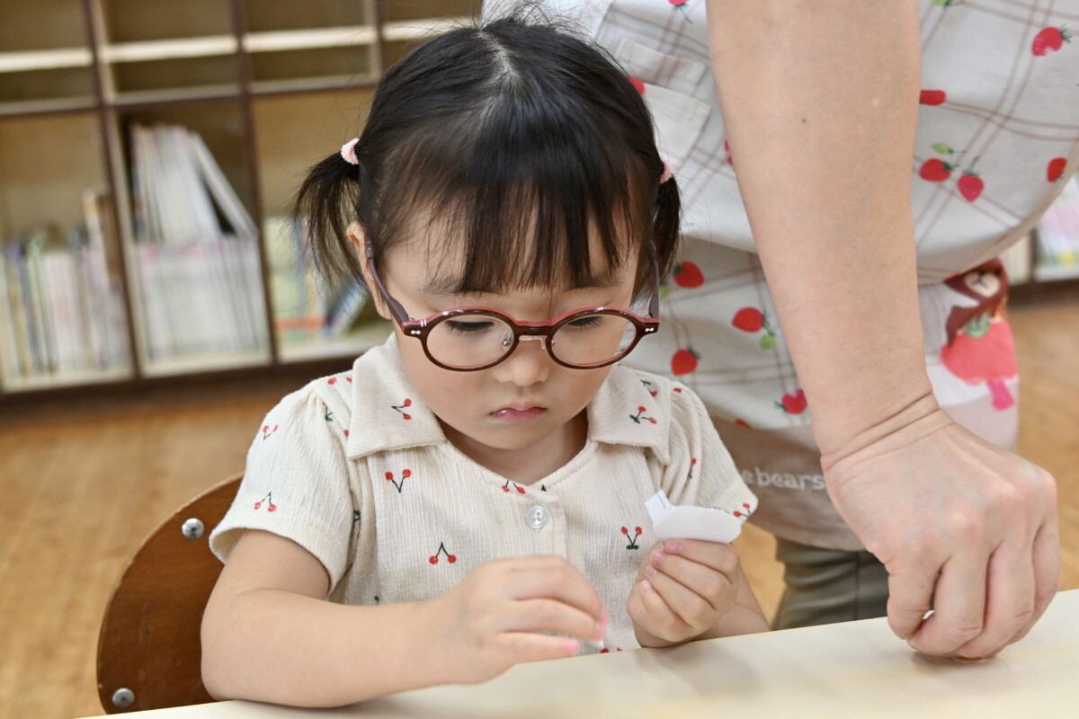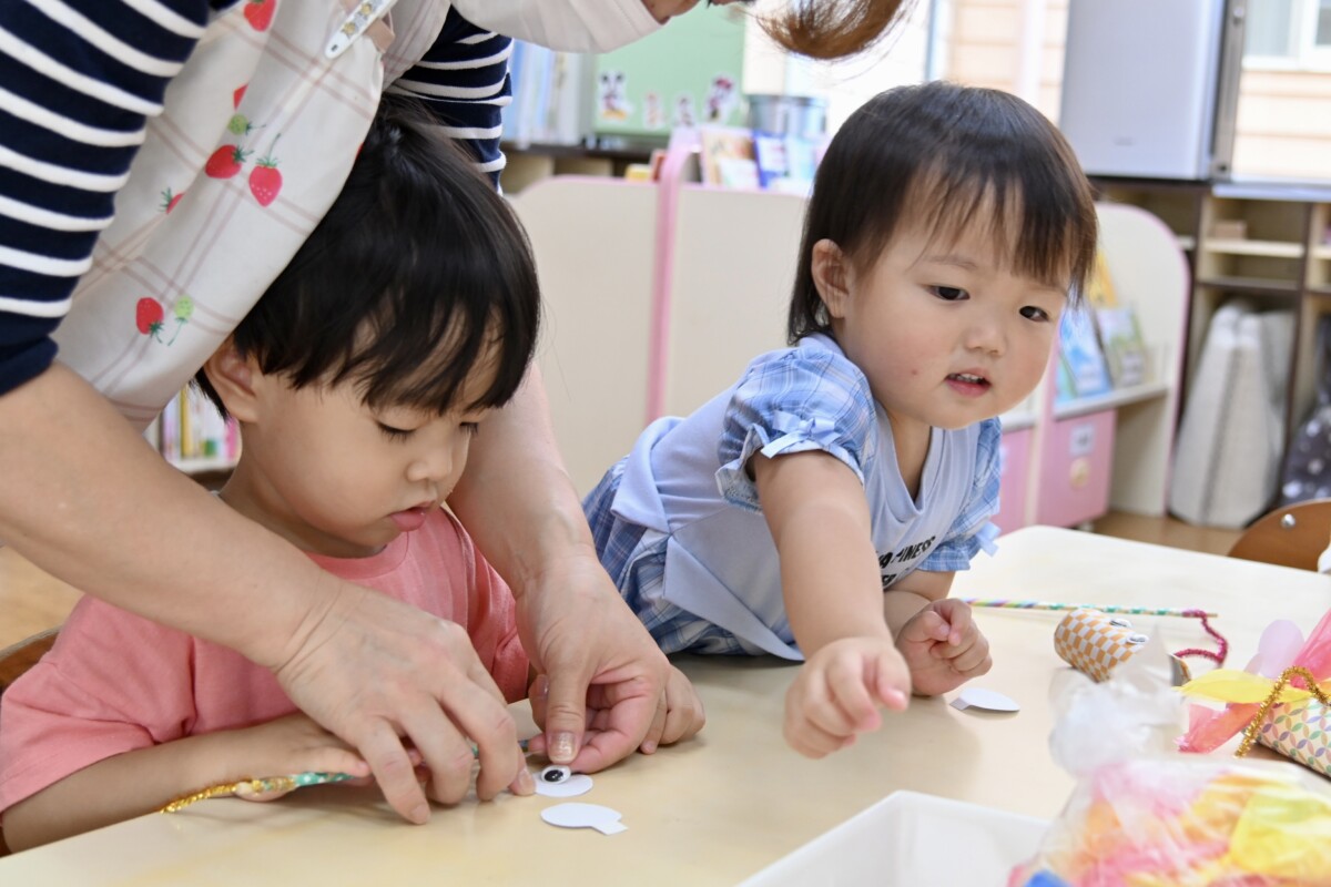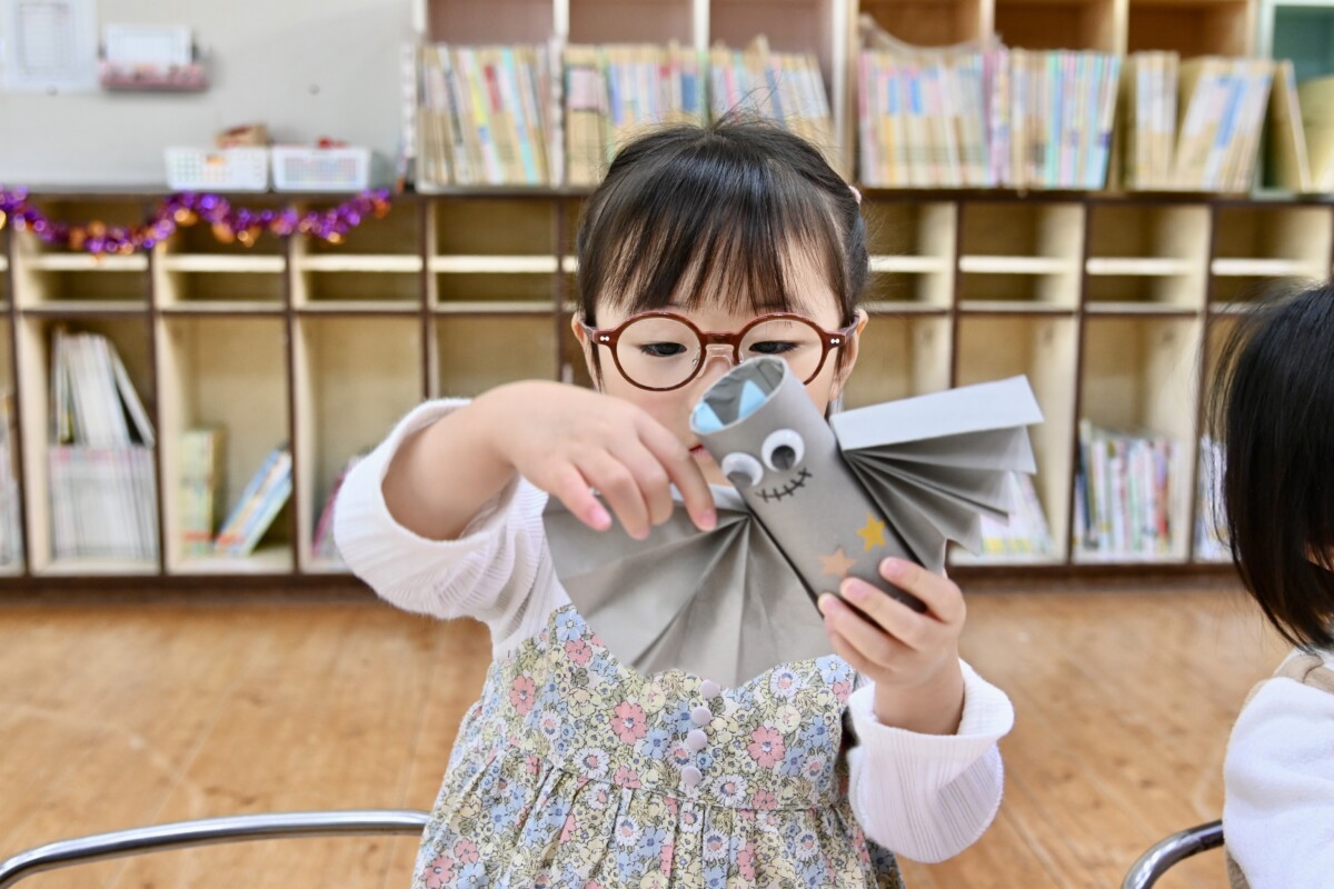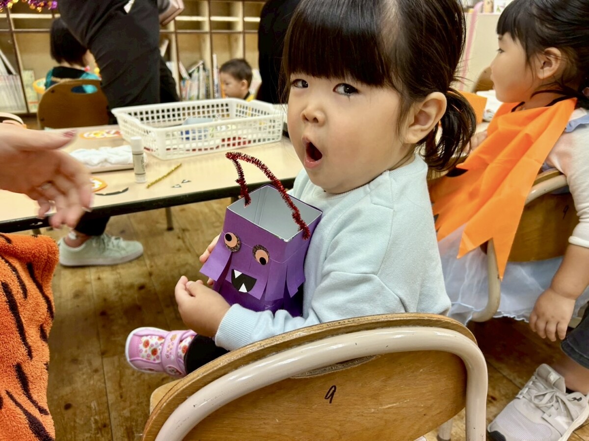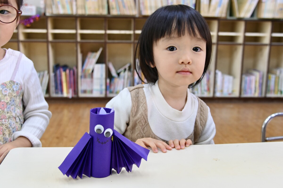 名前を呼ばれると「はーい!」と元気なお返事も聞かせてくれました☺️この日はハロウィン時期にちなんで『コウモリ制作』に挑戦★