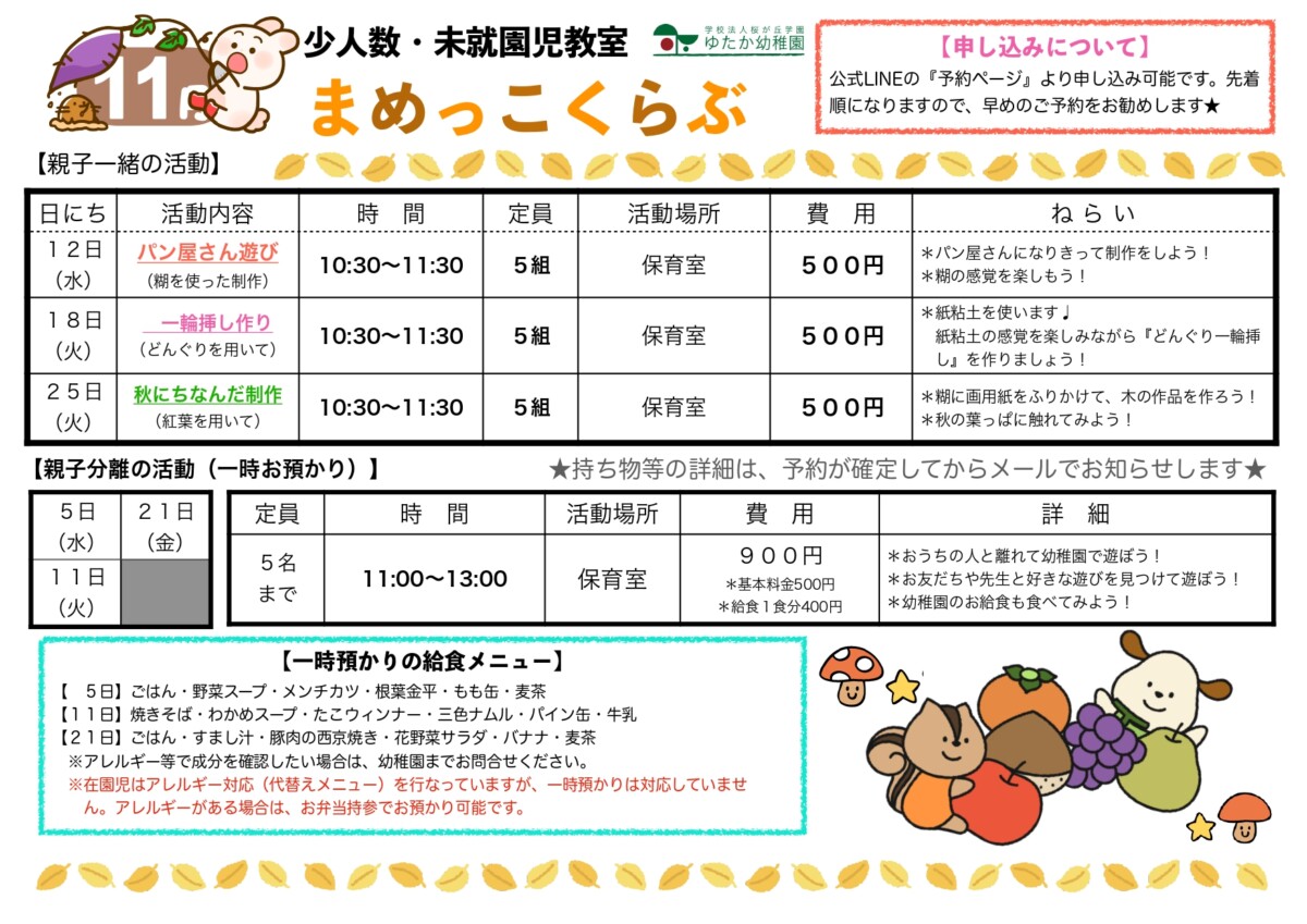 11月のまめっこくらぶも予約受付中です⭐️お気軽にご参加ください☺️