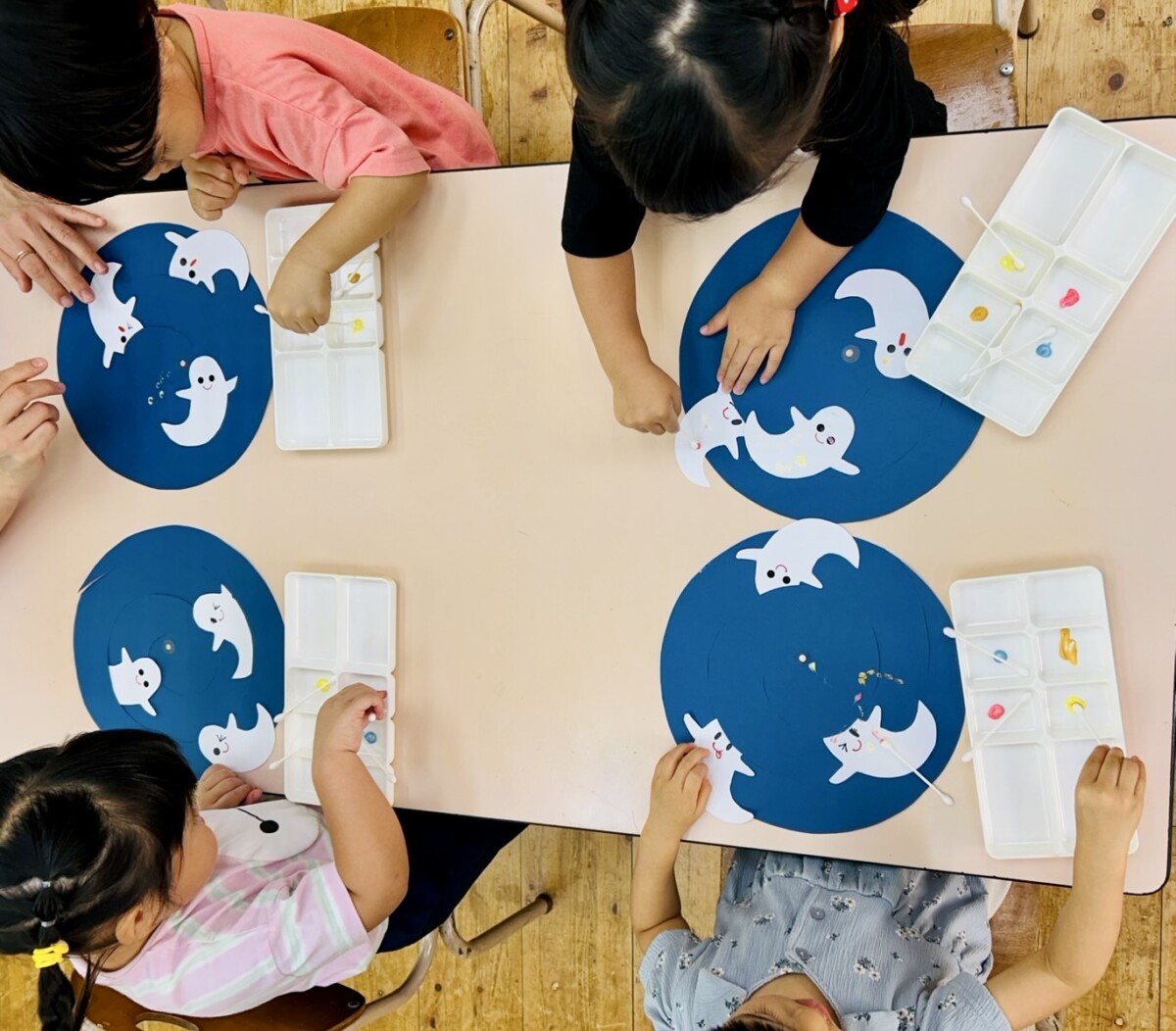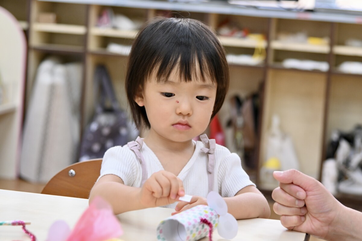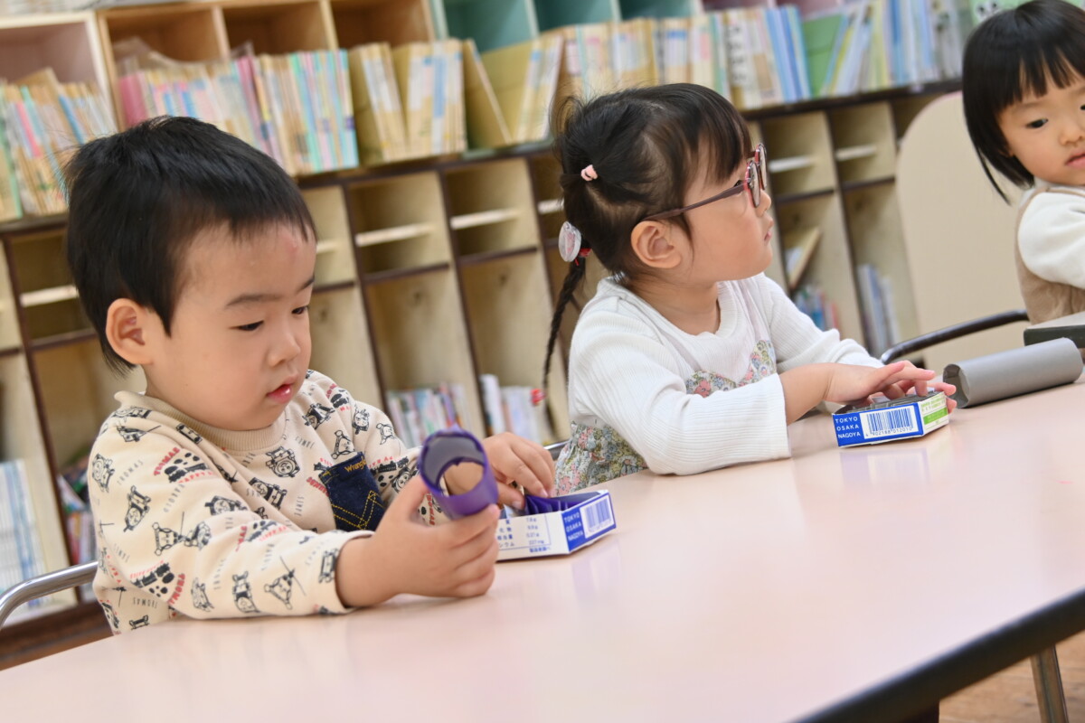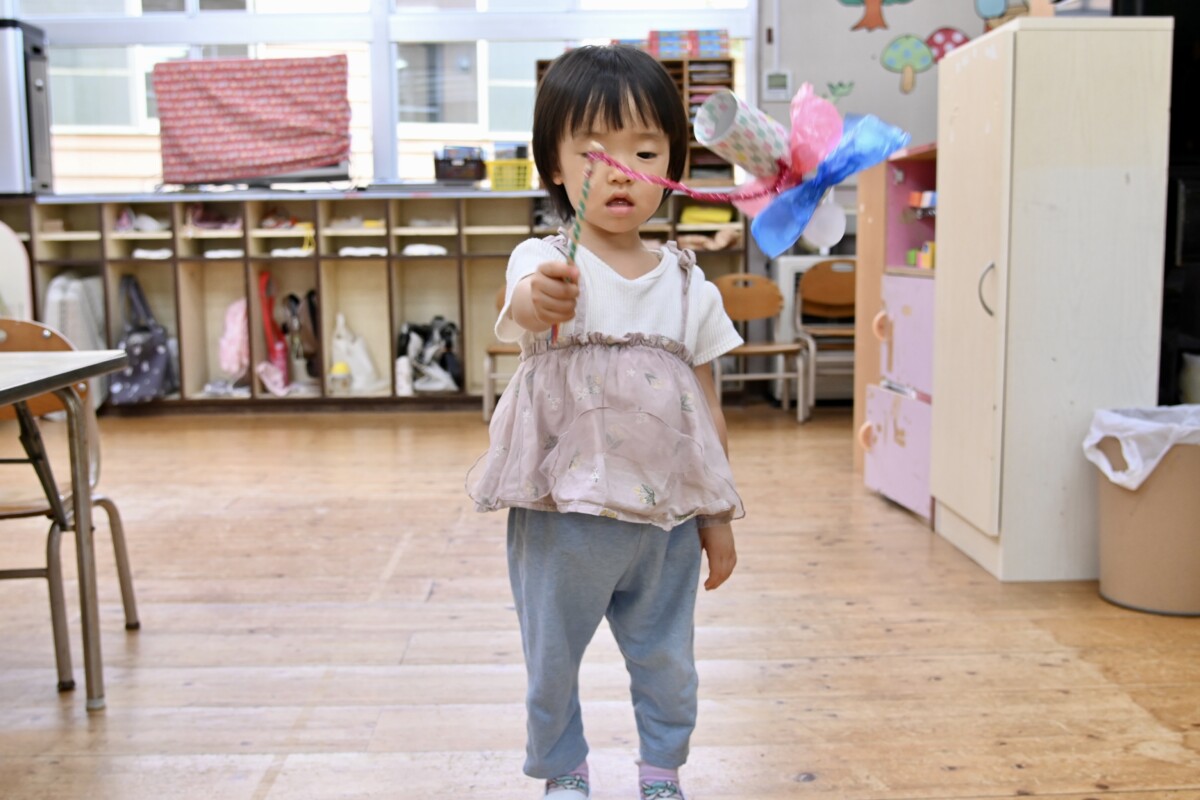 細かいところは先生と一緒に、自分でできるところは自分で作りました✨完成すると羽の部分を動かして飛ぶ真似をしたり、お友だちと遊びっこしたりと、完成を喜んでいました🎵