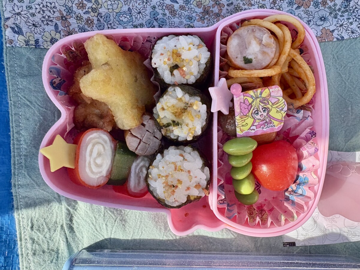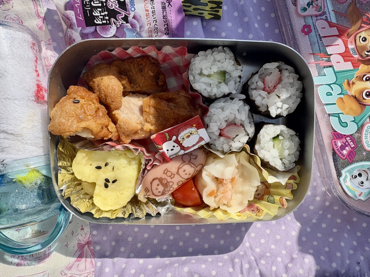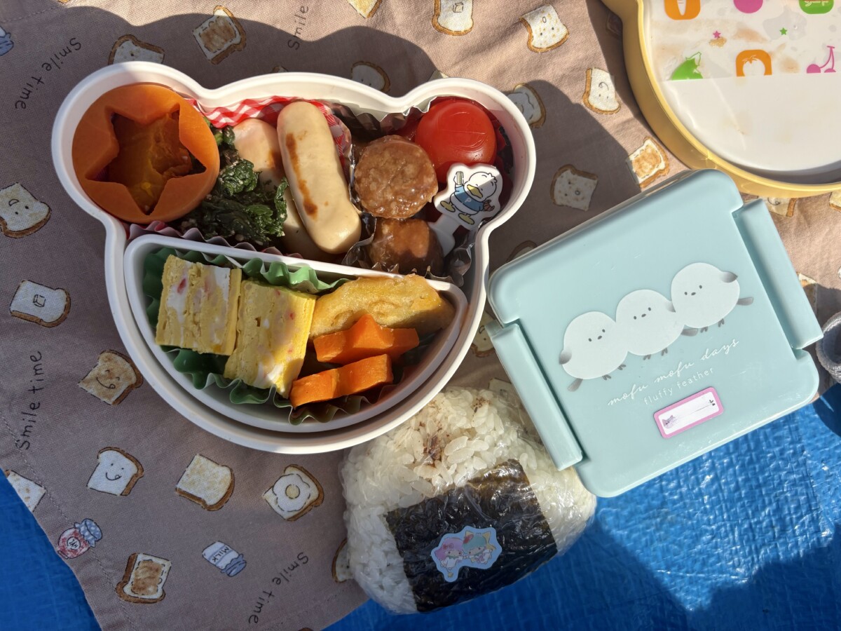 広い芝生にシートを広げて、みんなでお弁当を食べました🍱♡ひよこ組のお友だちのお弁当も写真に収めたので紹介します✨