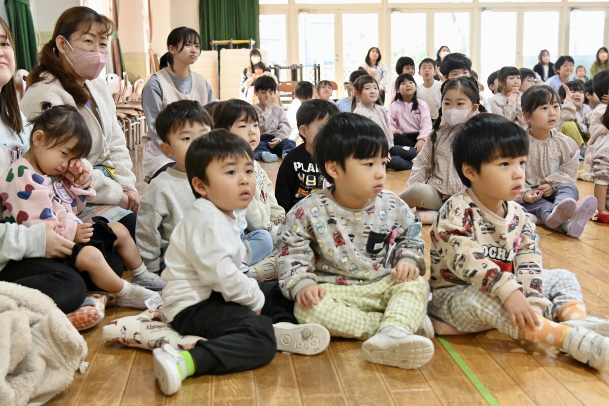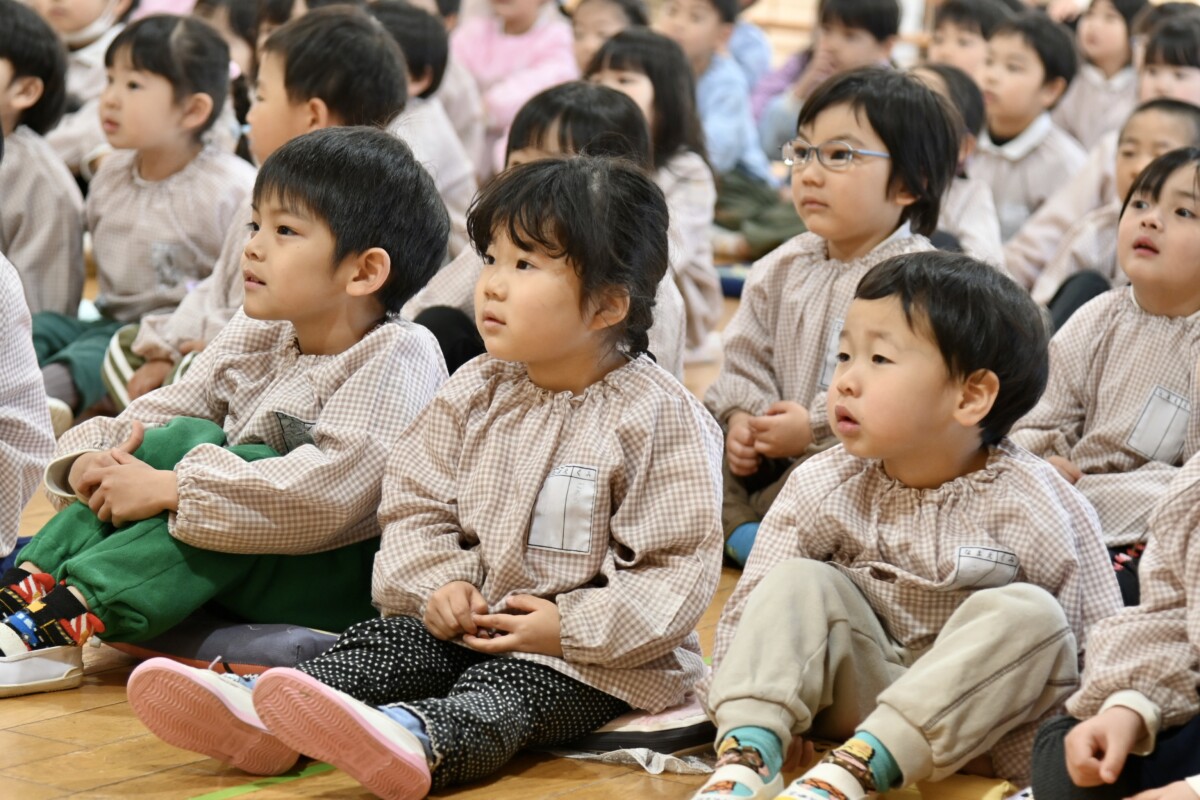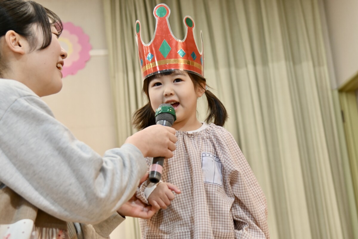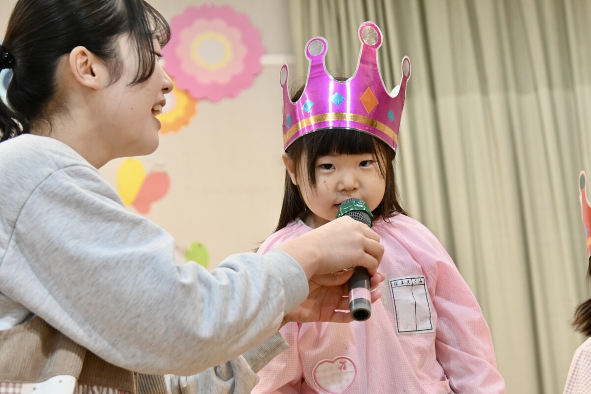 今日は2月生まれのお誕生日会を開催しました💝舞台に登った今日の主役は10名のお友だち🎵まずは園長先生からバースデーカードのプレゼントを首にかけてもらいます。今月誕生日を迎えるお友だち、自分の名前やお礼の言葉をしっかり言うことができていました✨
