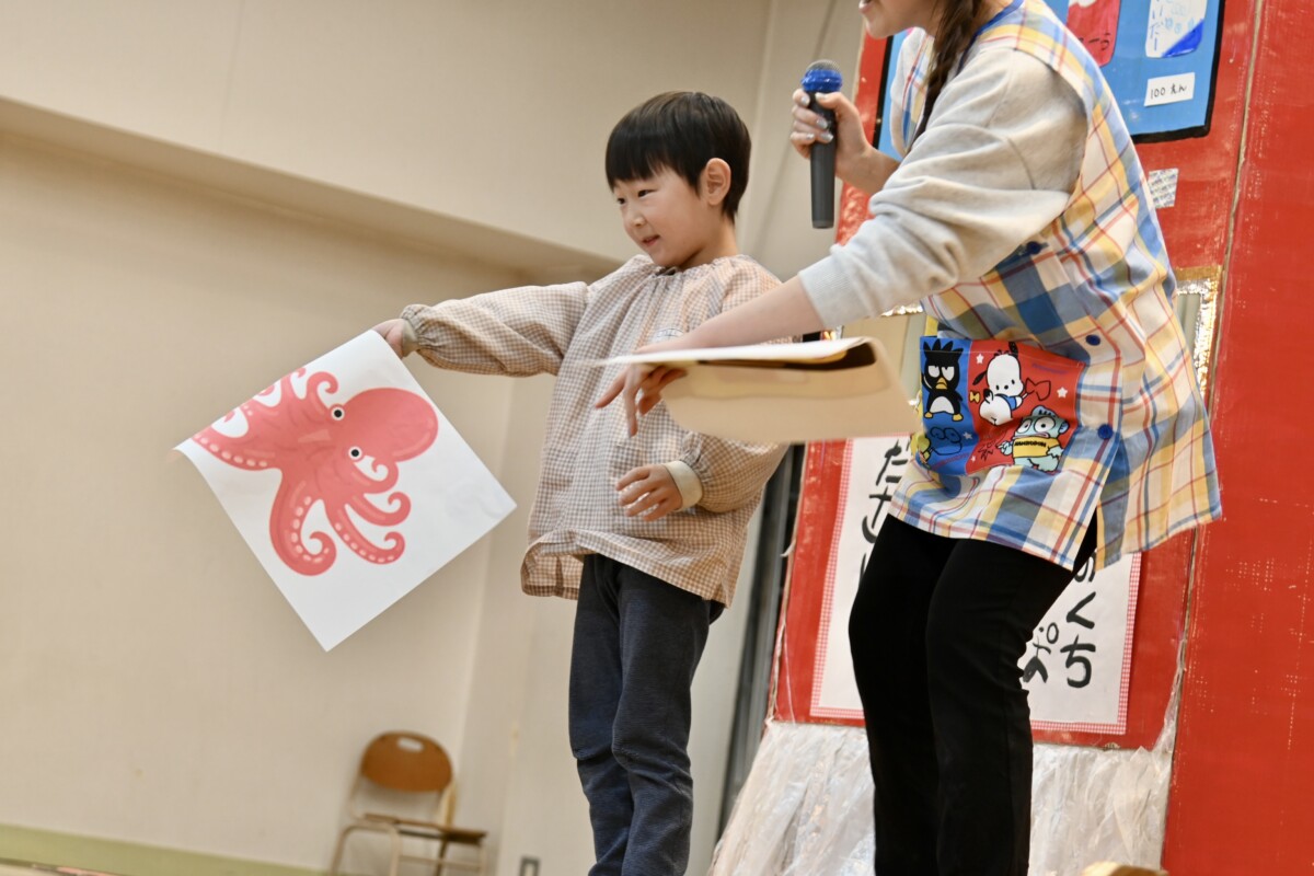 誕生日会の後は、先生たちの出し物の時間⭐️幕が開くと、今年の年長組のお友だちが年少組(こあら組)だった時に発表会でやった『ぽんたの自動販売機』が出てきました★