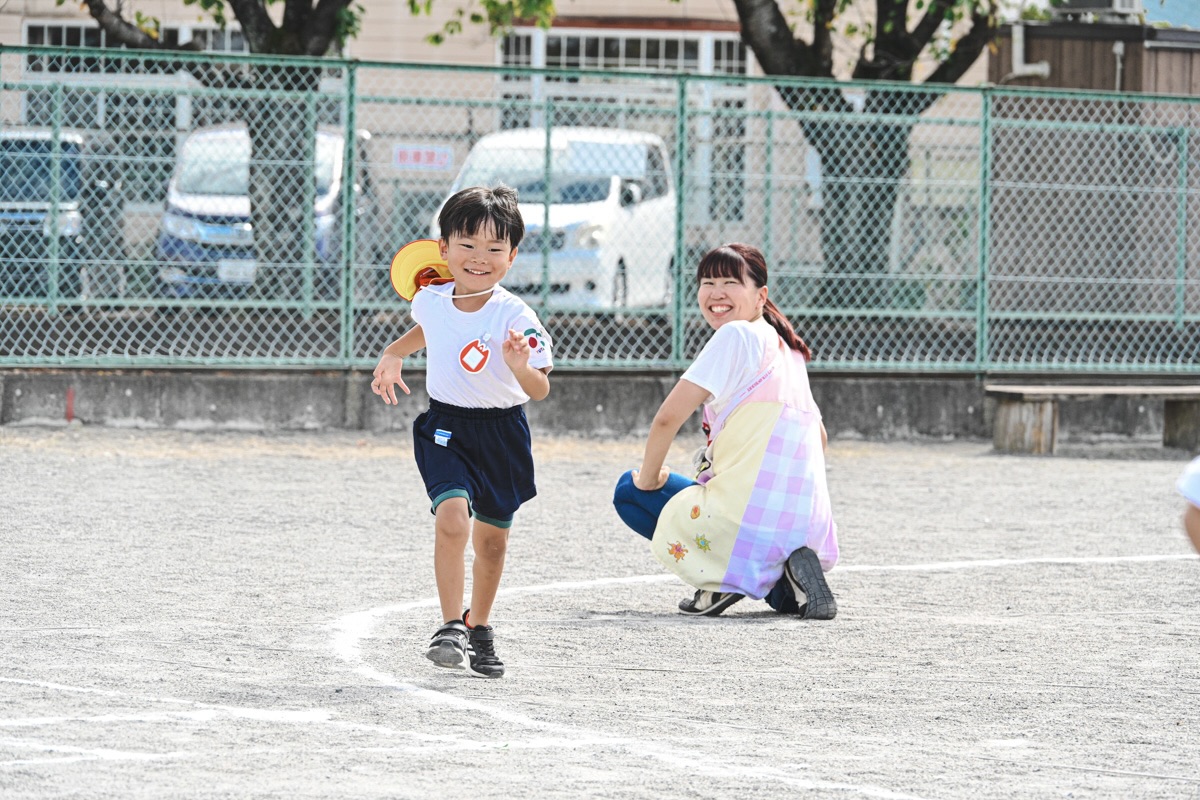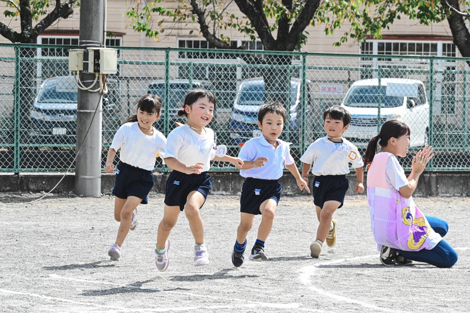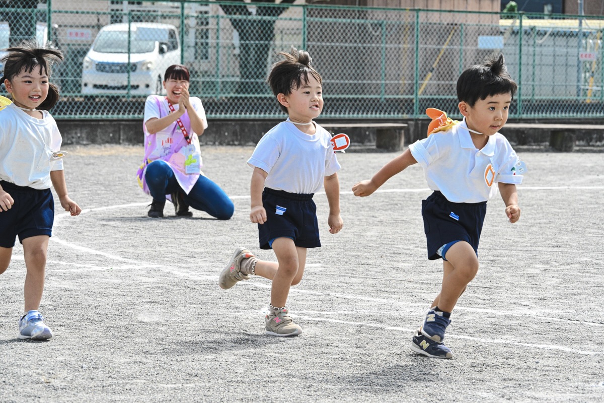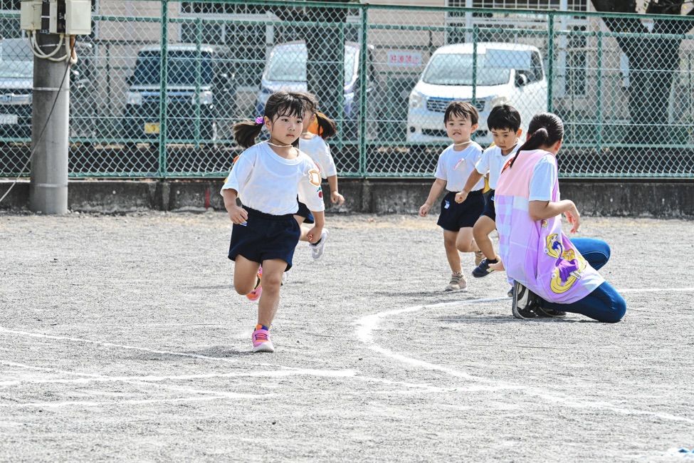 以前紹介したひよこ・年少組のかけっこでは、先生に名前を呼ばれたら、元気に「はーい!」と返事をしてからスタートでしたが、年中組は自分で名前を言います★今年初めての取り組みですが、今日の総練習ではどの子も元気いっぱい自分の名前を言うことができていました🌟
