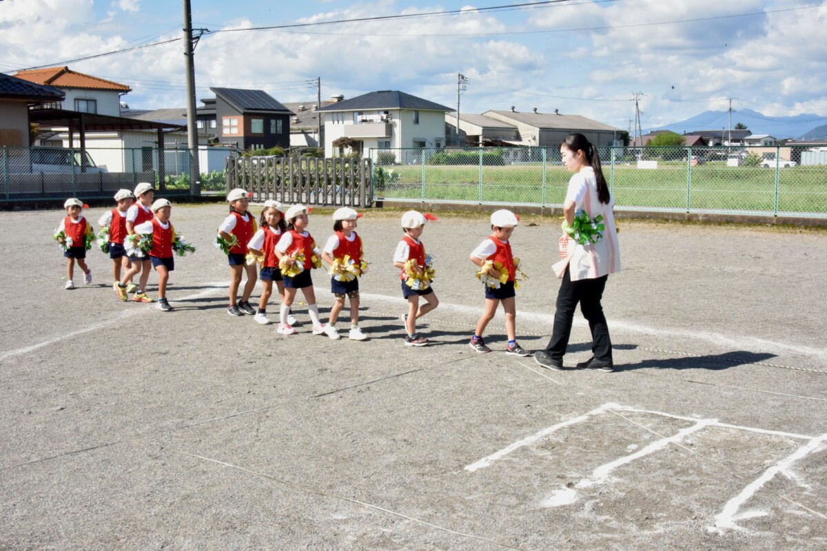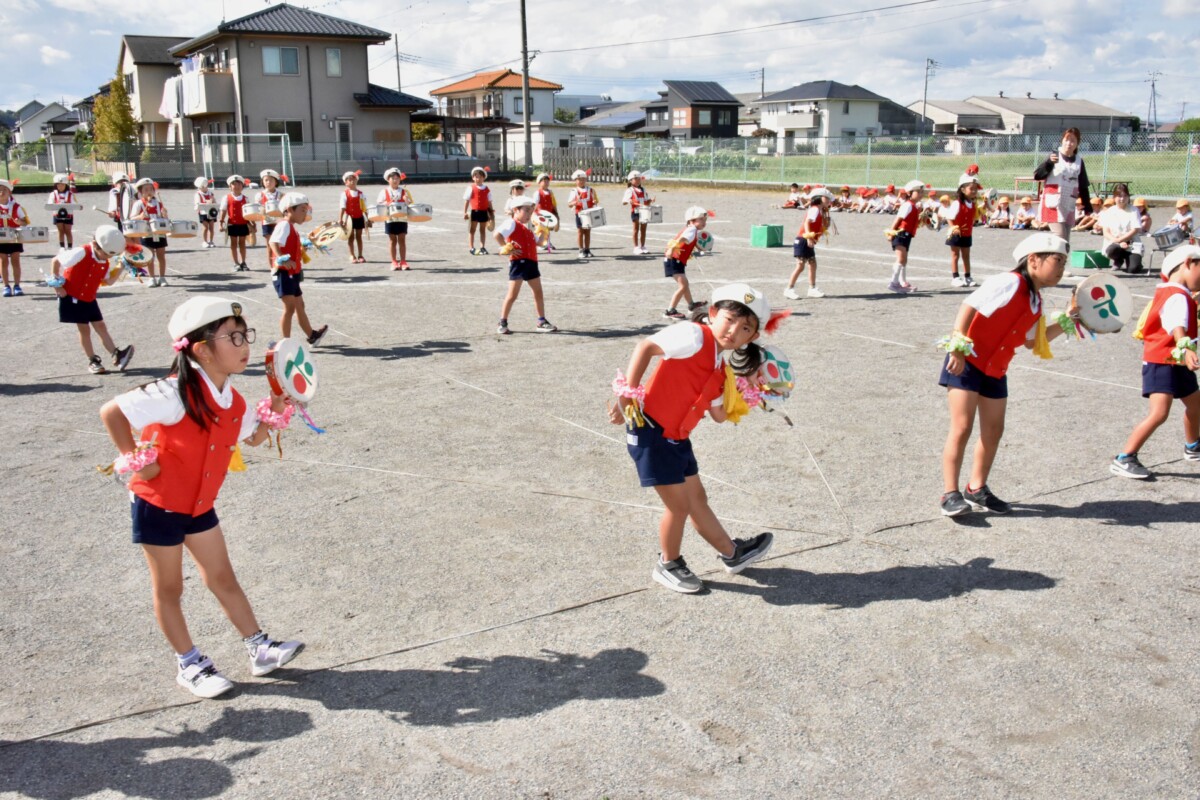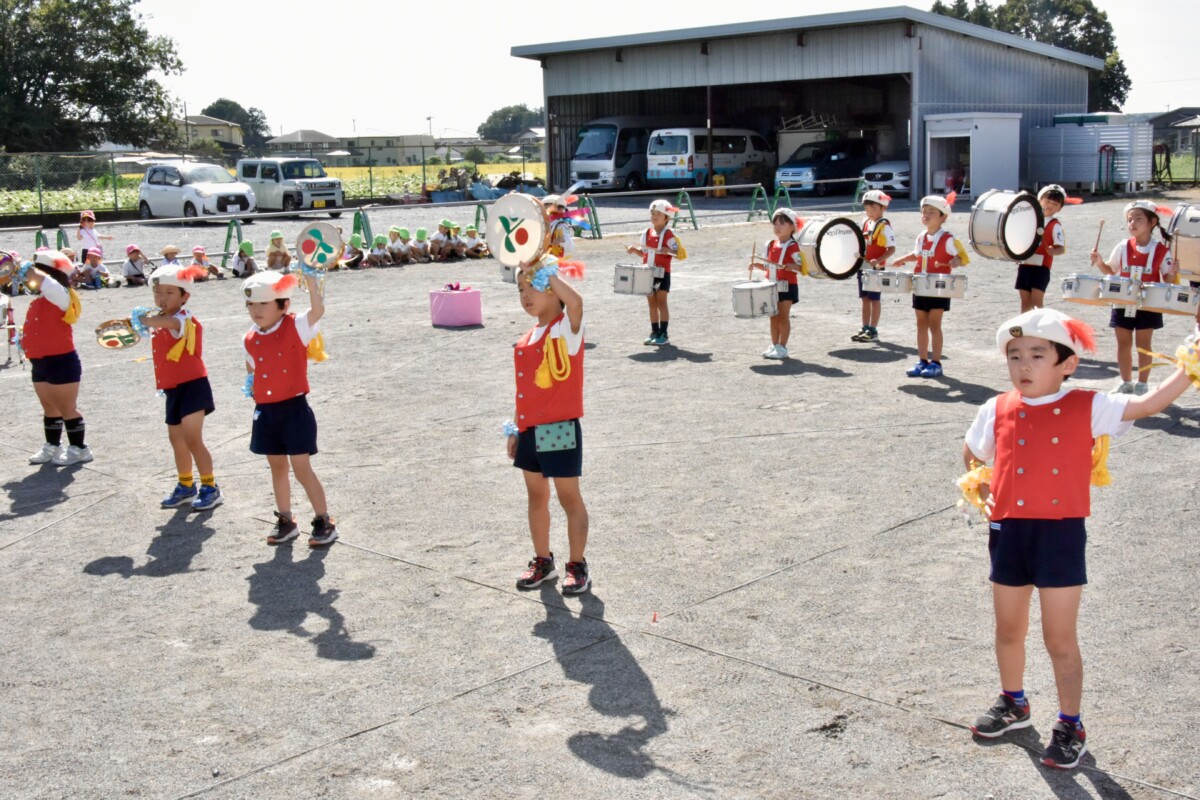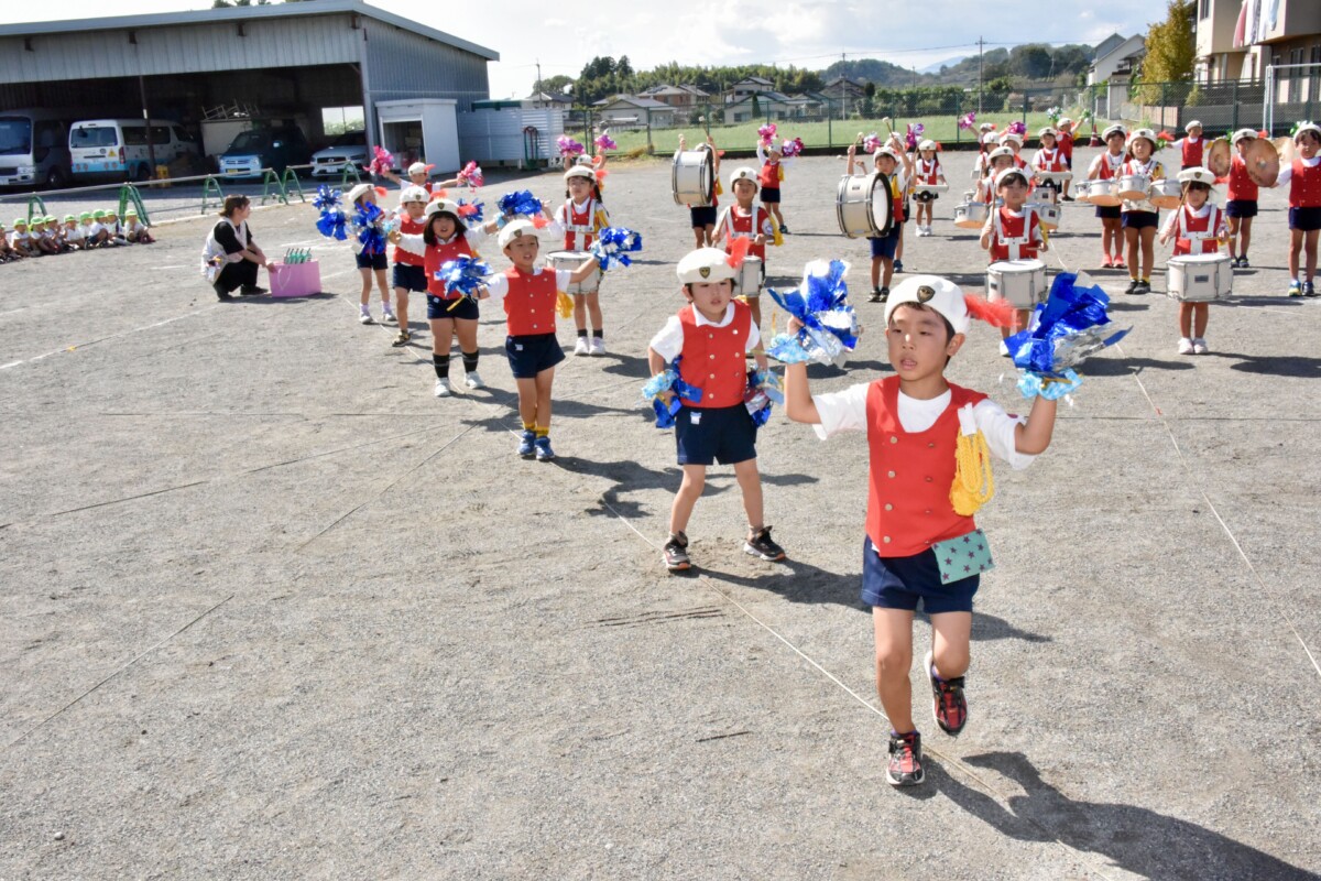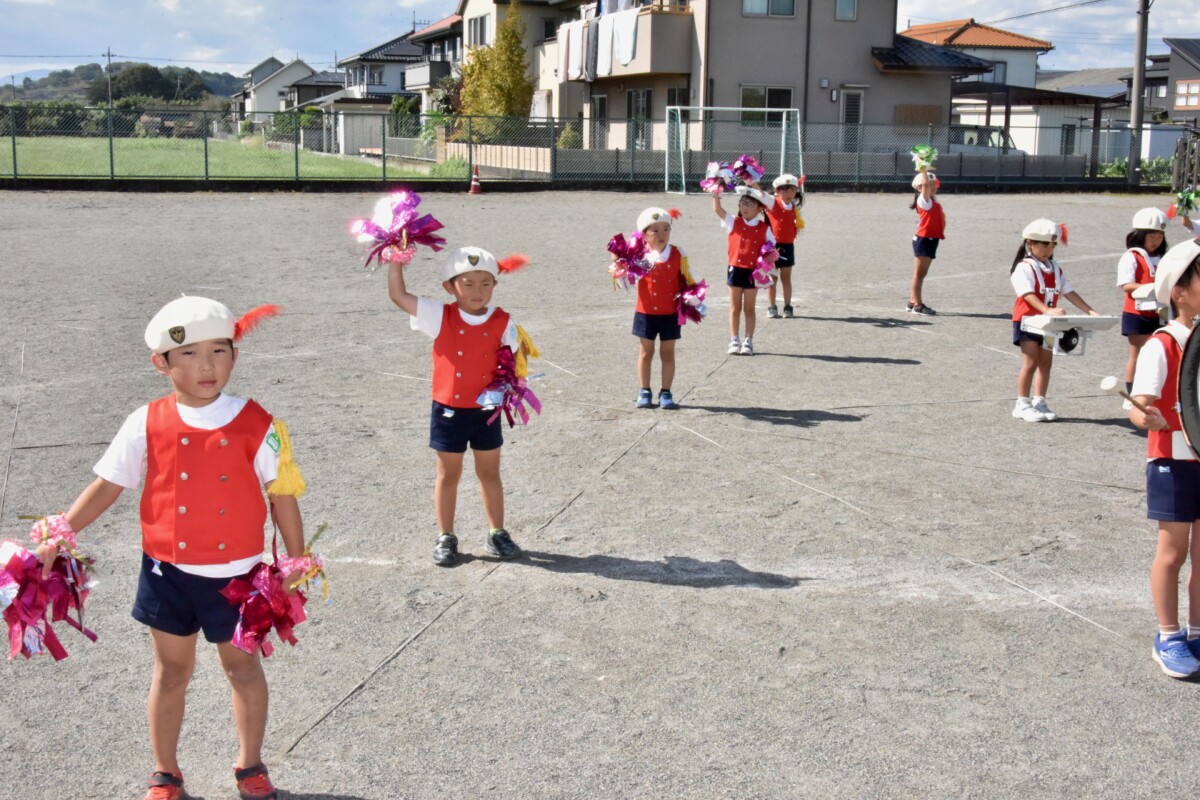1学期からコツコツと練習に励んできた鼓笛活動ですが、いよいよお披露目の時を迎えました☆今日は他の学年のお友だちも第3グランドに集まり、年長組は運動会と同じ衣装を着て演奏を披露しました🎵