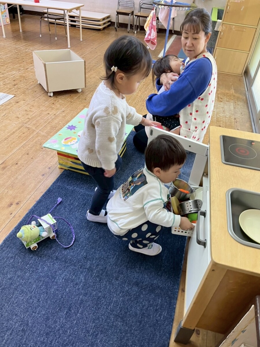 在園児のお友だちが覗きにやってくることもあります⭐️お兄さん・お姉さんが来てくれると、まめっこくらぶのお友だちも興味津々で、とても嬉しそうです☺️一時預かり保育は人気で、予約がすぐ埋まってしまうので、まだ参加したことない方はぜひ参加してくださいね🎵お待ちしています!!✨
