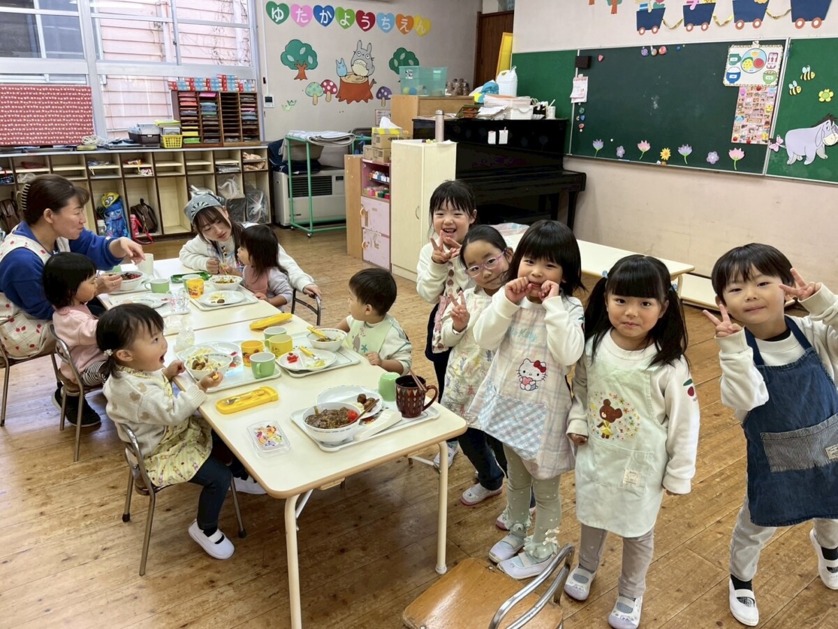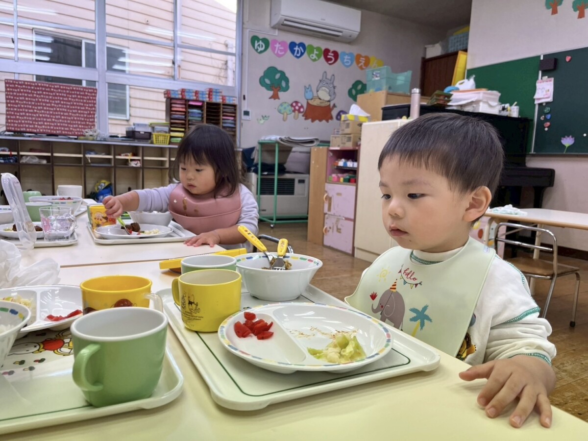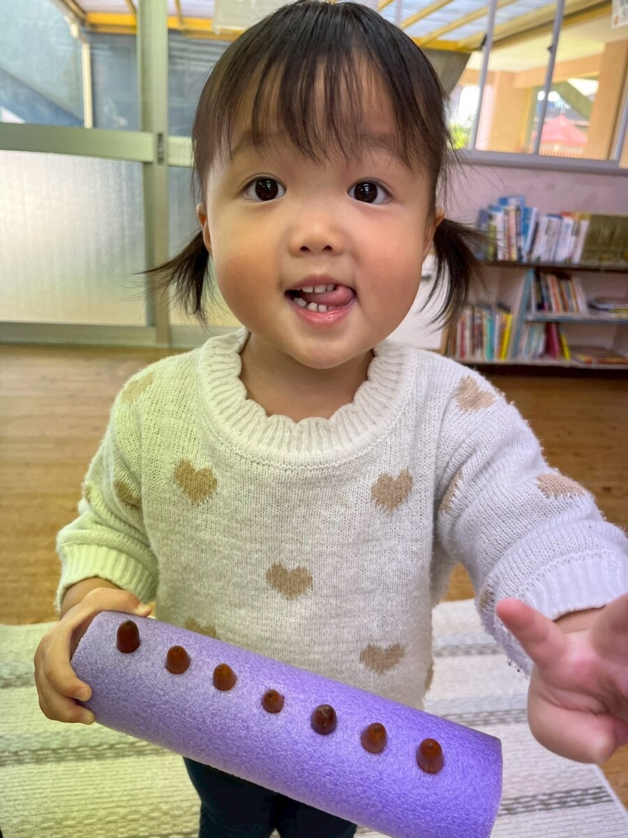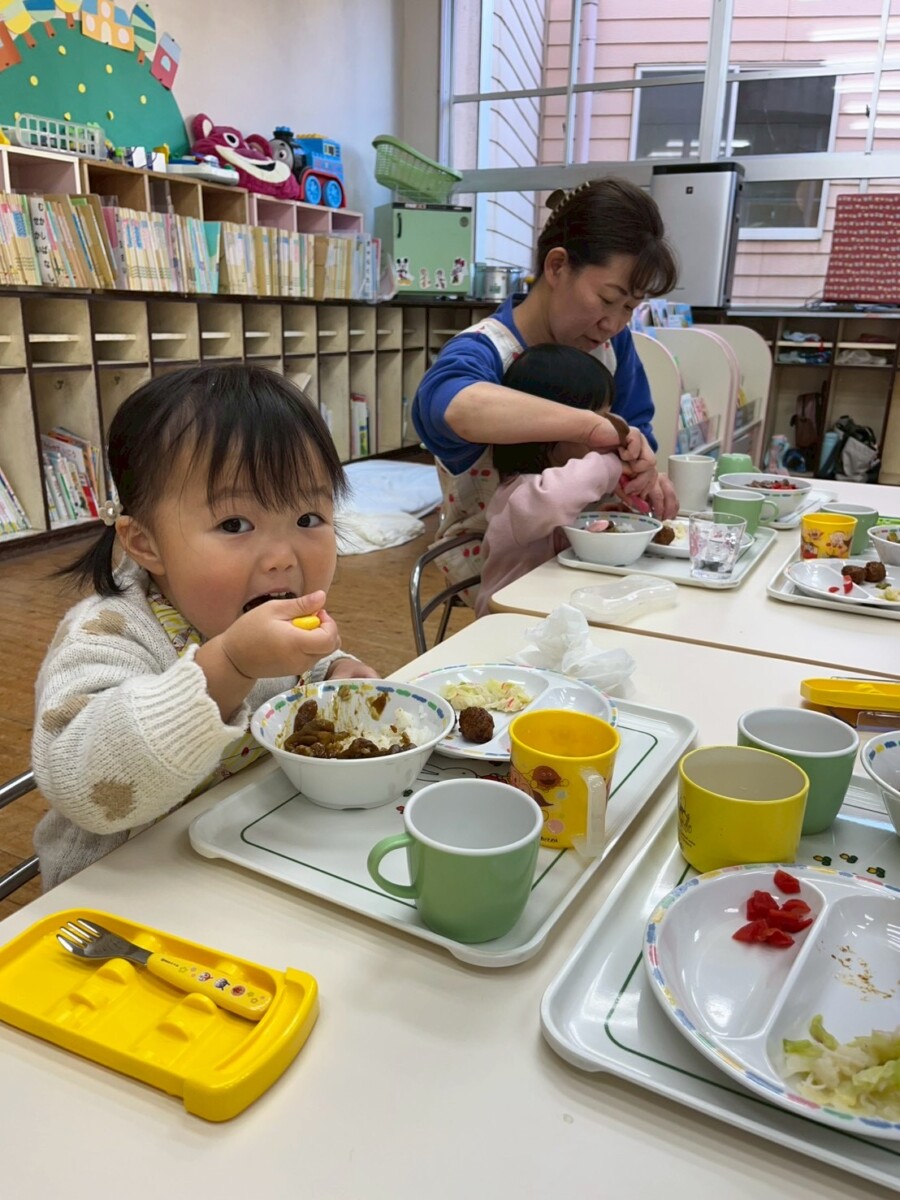 先月は秋の自然『どんぐり』が大人気!!🍂大量のどんぐりを使って、細かな遊びからダイナミックな遊びまで、夢中になって遊んでいました🎵一時預かり保育では、お給食も先生やお友だちと一緒に食べます⭐️