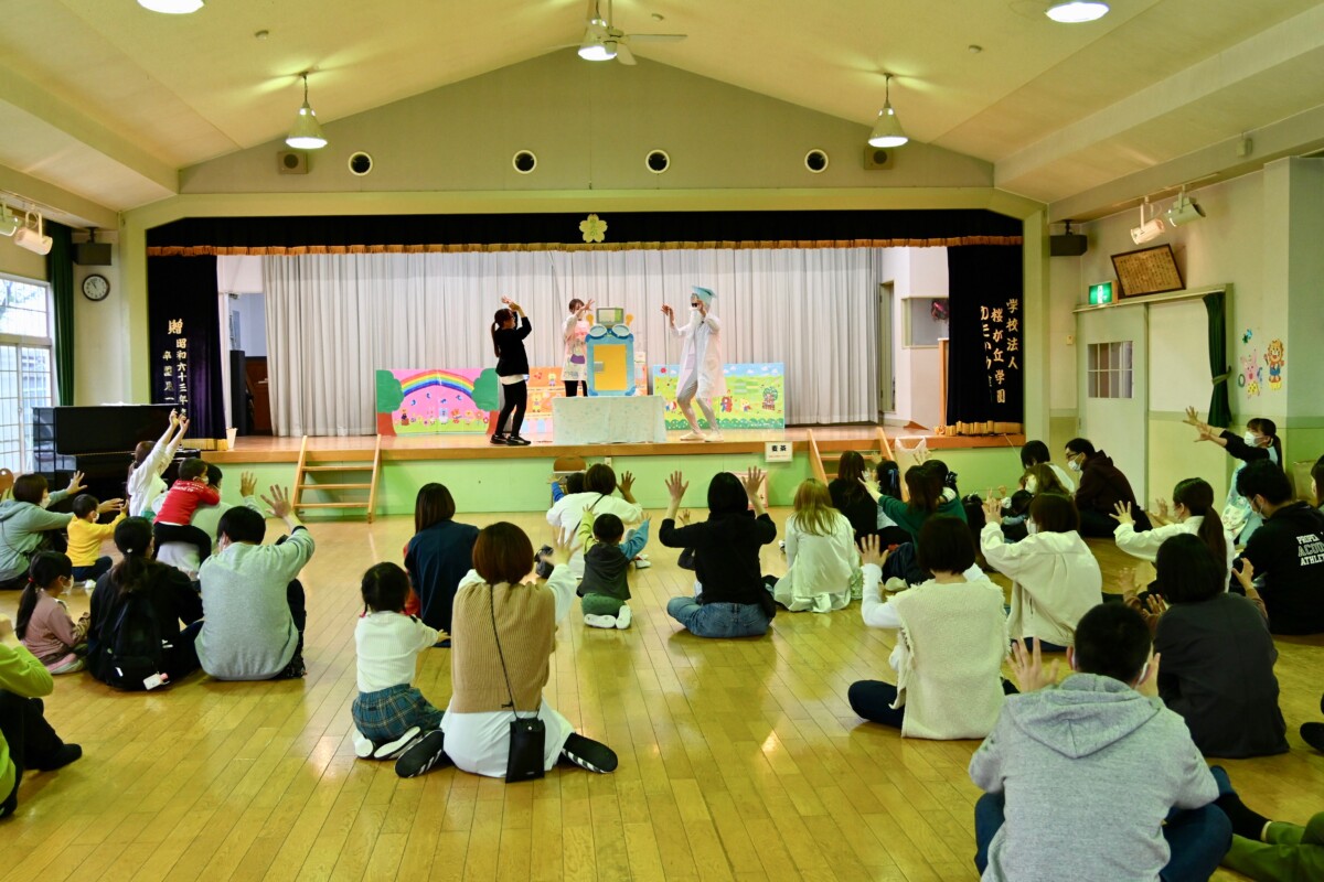 先生たちと一緒にアンパンマンの手遊び♡そのあとは、先生たちの出し物を鑑賞しました♪