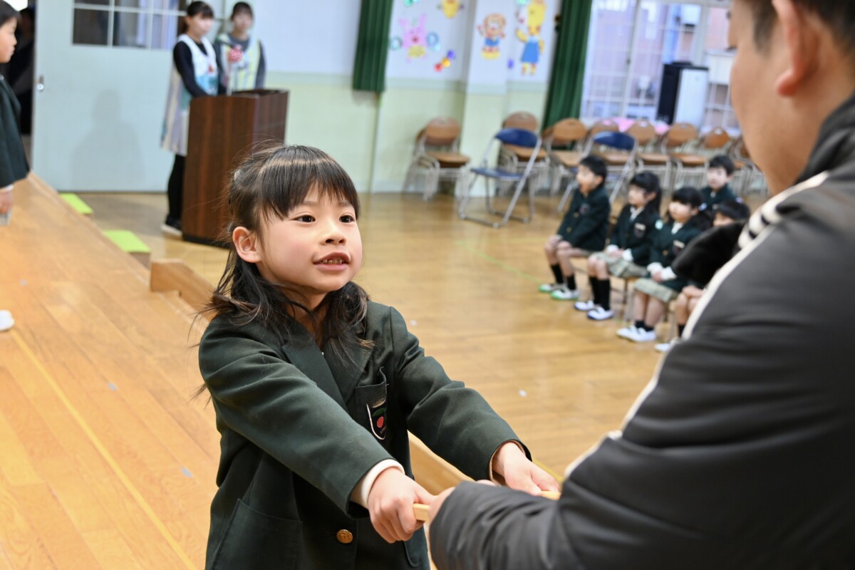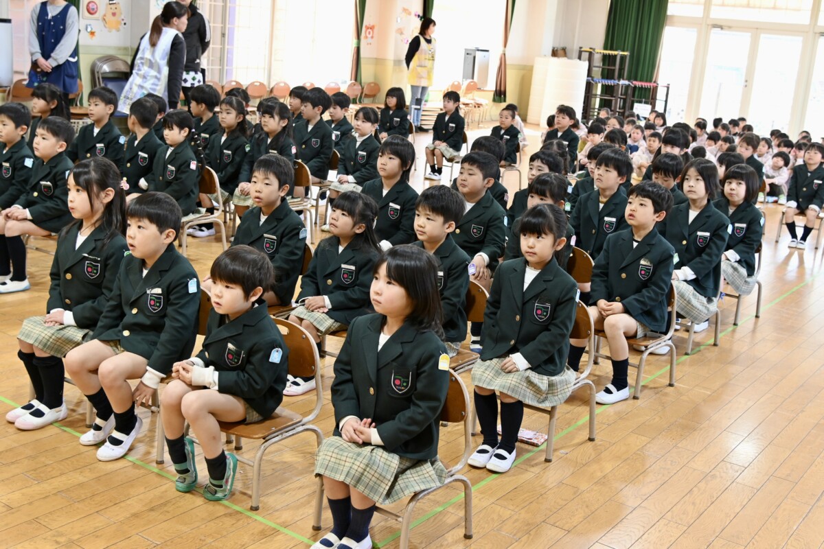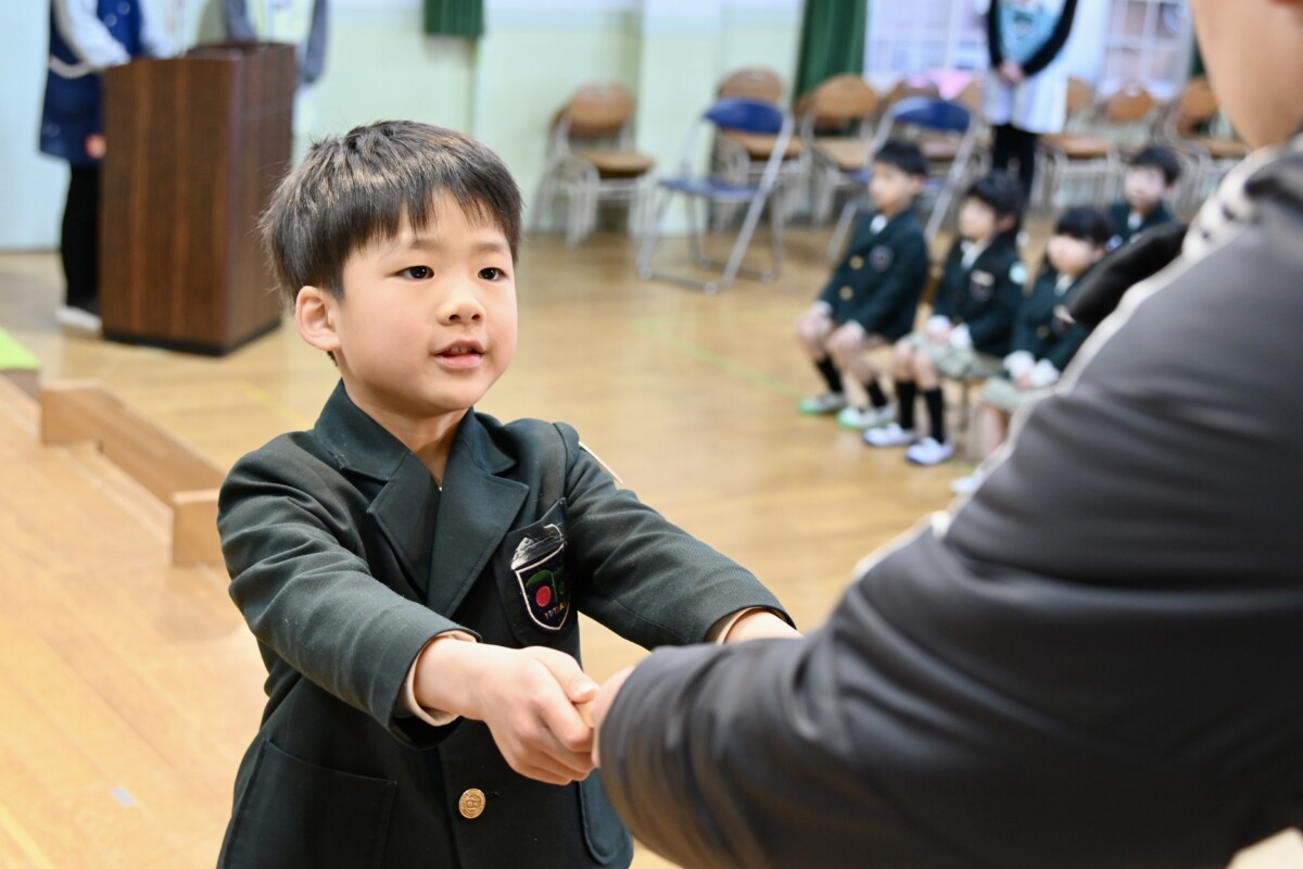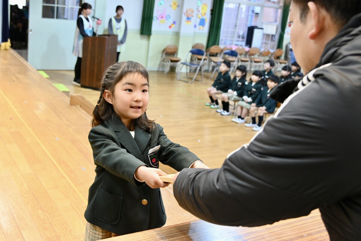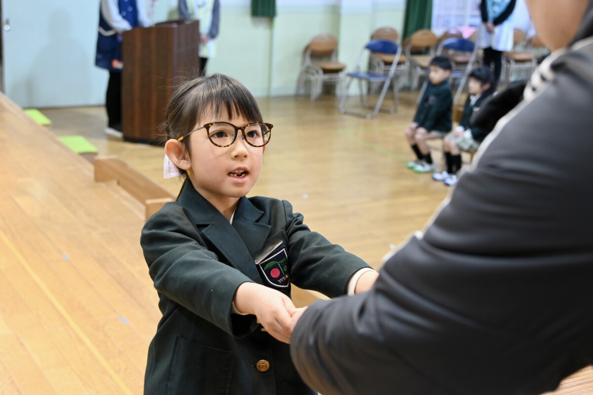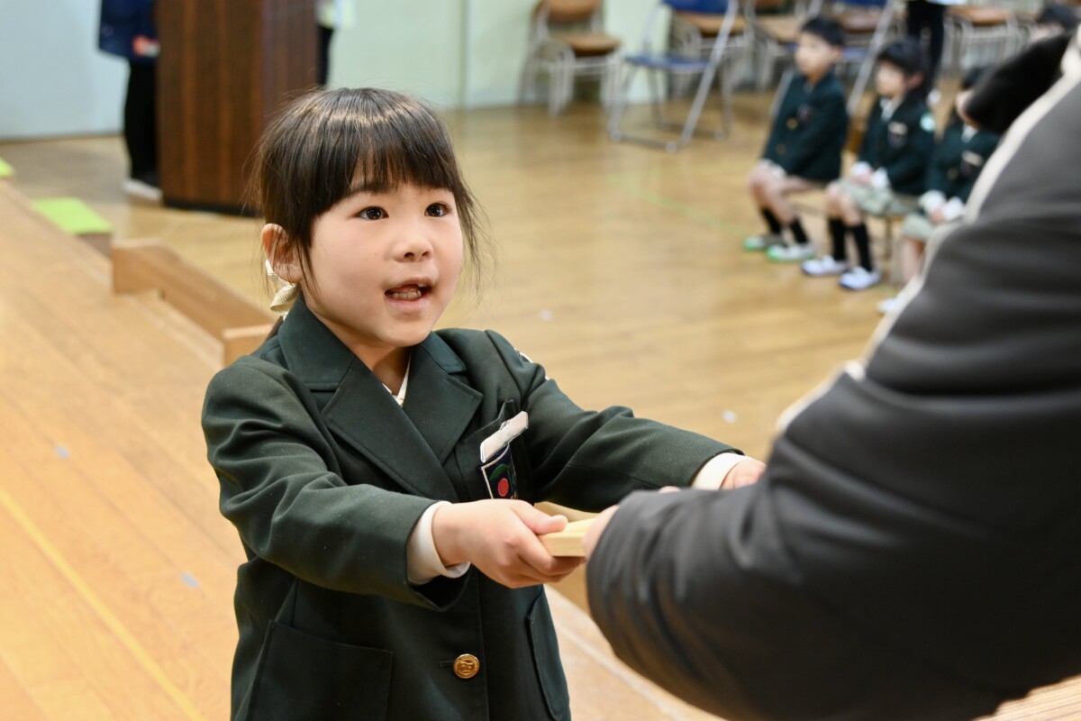 記念品授与では、代表のお友だちが舞台上に登って理事長先生・園長先生・PTA会長さんから記念品を受け取ります。背筋もピンっとなっていて、どの場面を切り取ってもかっこいい姿です✨