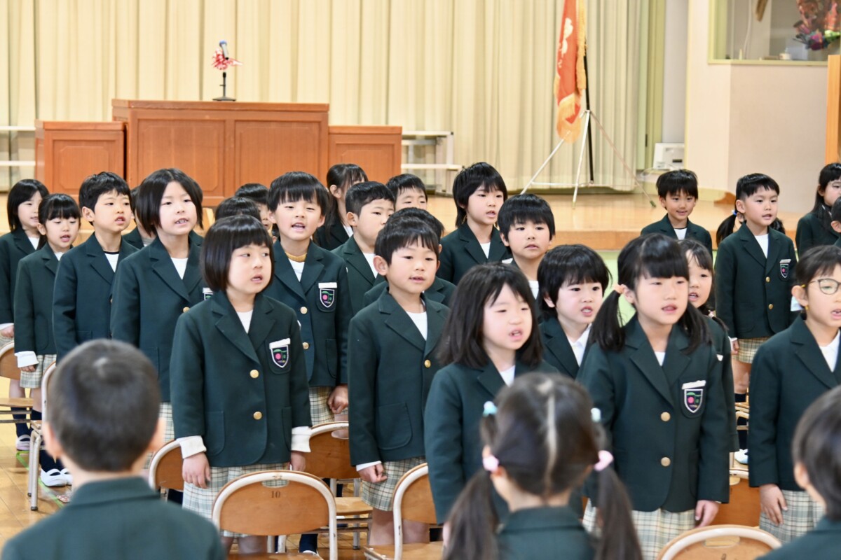 卒園式のオープニングは、年長組全員による『はじめの一歩』の合唱✨凛々しい表情で堂々とした姿は、舞台下から見ているととても立派で、目が釘付けになってしまいます。年中・年少・ひよこ組のお友だちもそんな年長組の姿を、しっかり目に焼き付けていました★