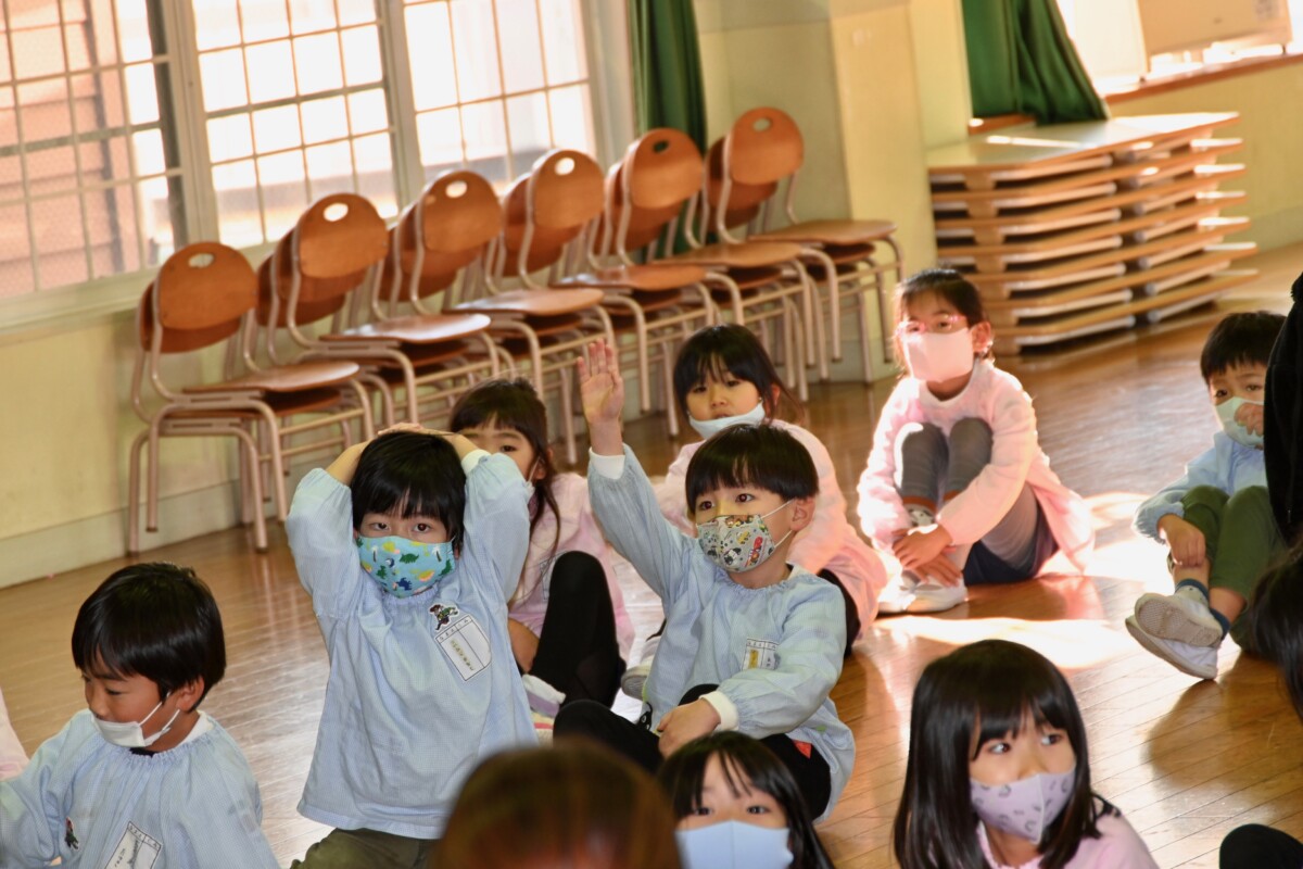 小学校との交流会は、毎年行っている活動の一つですが、コロナが流行する前は幼稚園児たちが実際に小学校を訪問し、1・2年生のお兄さん・お姉さんたちと交流を深めていました。実際に小学校に行き、校舎の中を案内してもらうことで、小学校への期待もさらに大きく膨らむ、とても貴重な体験なのですが、今年も残念ながら直接訪問することは叶いませんでした。しかし、豊郷北小学校の皆さん同様、海道小学校の先生方や児童の皆さんが、コロナ渦の中でもできることを一生懸命考え、今日の交流会のために準備をしてくれました♪
