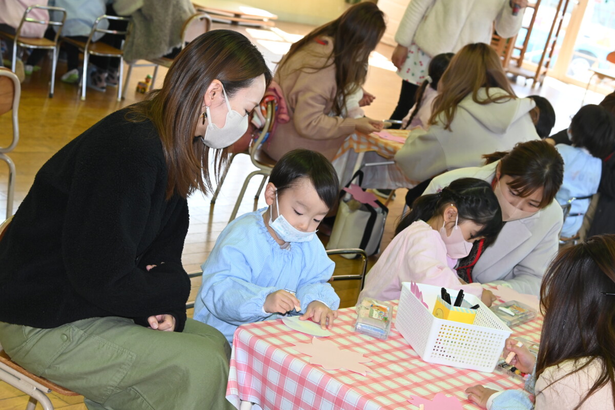 今年も保育室内での保育参観を行うことはできませんでしたが、『少しでも子どもたちの成長した姿を保護者の方に見てほしい』『普段の保育に少しでも近いかたちで保育参観を行いたい』という思いから、今回の保育参観はテーブルを使っての制作活動を取り入れました☆1クラス30分ずつという限られた時間内での活動だったので、少し急ぎ足にはなってしまいましたが、この1年間の成長を少しでも見ていただけたのではないかと思います♪