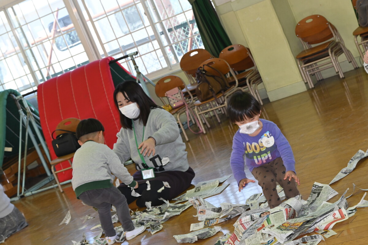 その後は、今日の活動『新聞紙遊び』!!