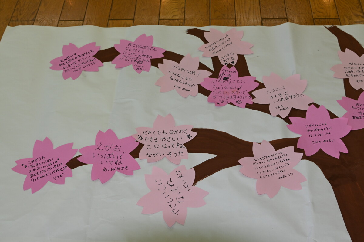桜の花びらには年少組と同じように、「こんなふうに育ってほしいな」「こんな子になってほしいな」という”願い”を保護者の方に書いてもらいました♪