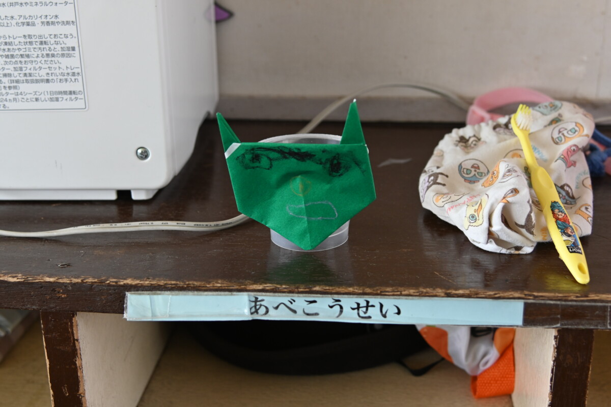 そして今日の豆まきで使っていた豆のカップ☆年中組は折り紙で作った”鬼”が付いていました★