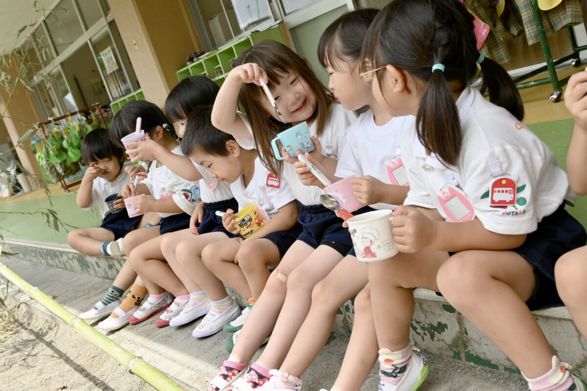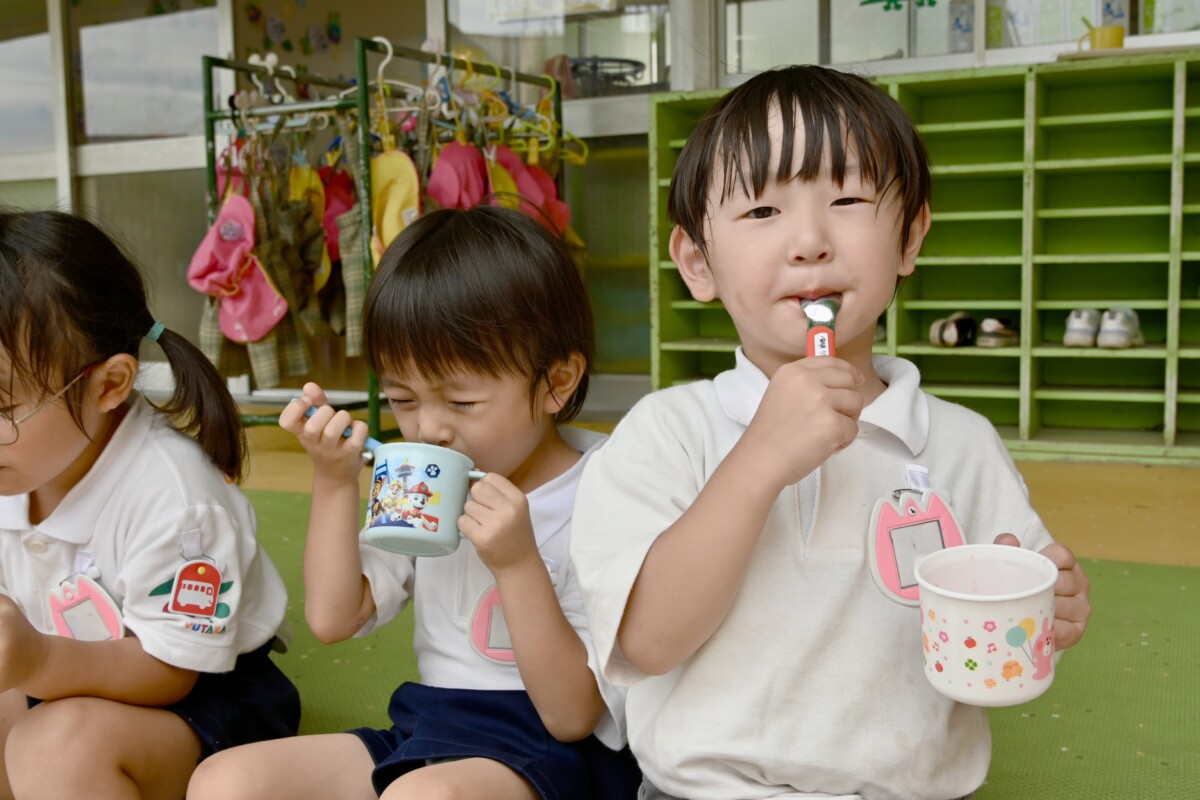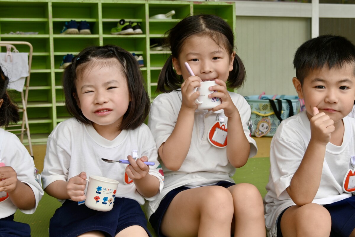 写真は年少・年中組ですが、ひよこ組と年長組も食べました🍓♡つみたてのいちごも美味しかったですが、冷凍になっているいちごもまた格別の味♡「冷たくておいしい!」「あま〜い!」「すっぱ〜い☆」「もっと食べたい!」「おかわりした〜い!!」など、様々な言葉が聞こえてきていました😀🎵