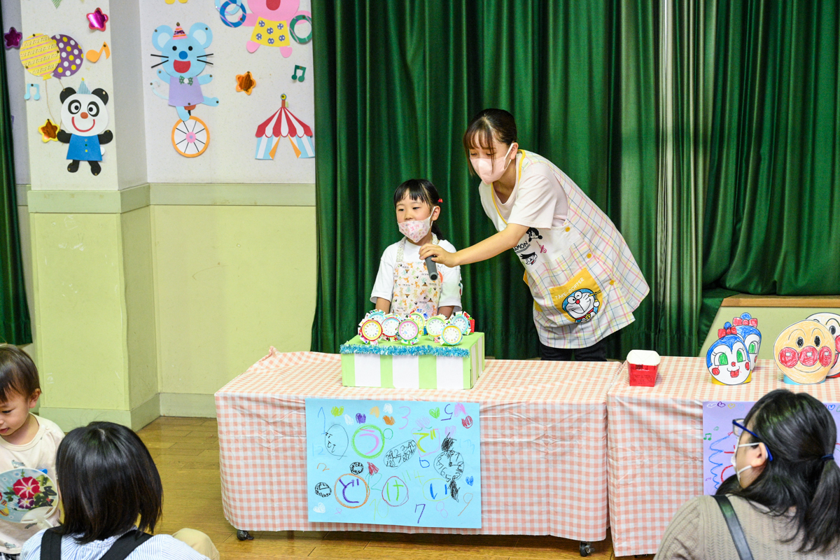 ちびっこひろばのお友だちも一緒に踊り、お祭り気分を味わいました☆その後は、きく組さんがお店屋さんに変身★