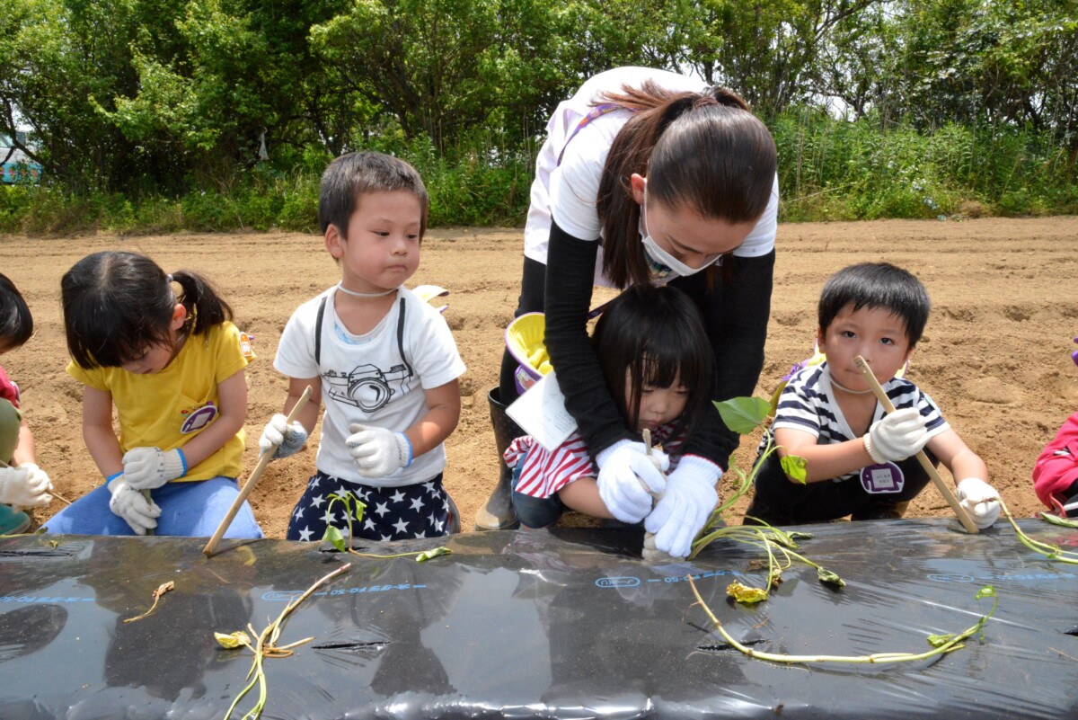 いちご狩りを終えたばかりですが、幼稚園では秋の収穫に向けて、年中組さんがさつま苗植えに出かけました!!