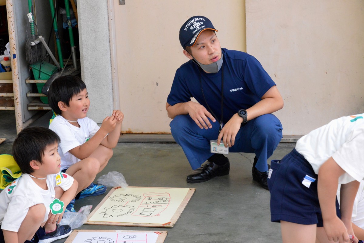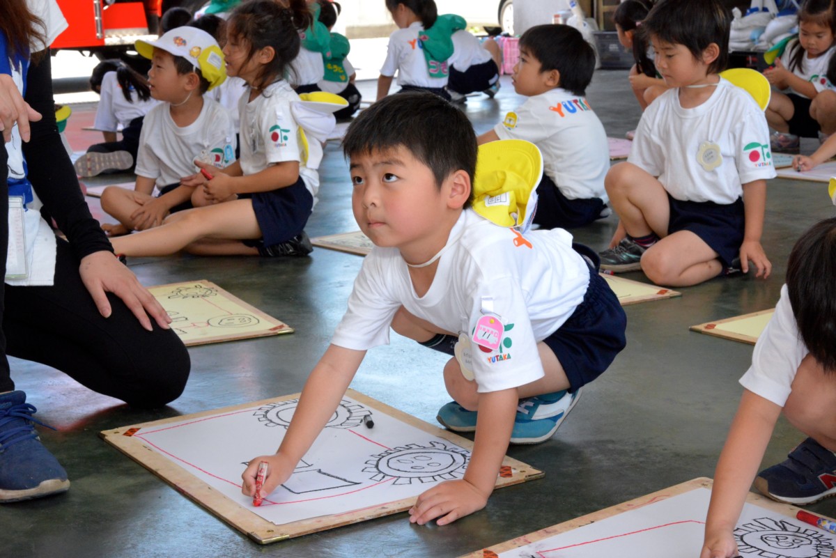 今日から2日間、年長組さんが避難訓練などでもお世話になっている中央消防署河内分署に、写生会に出かけました☆