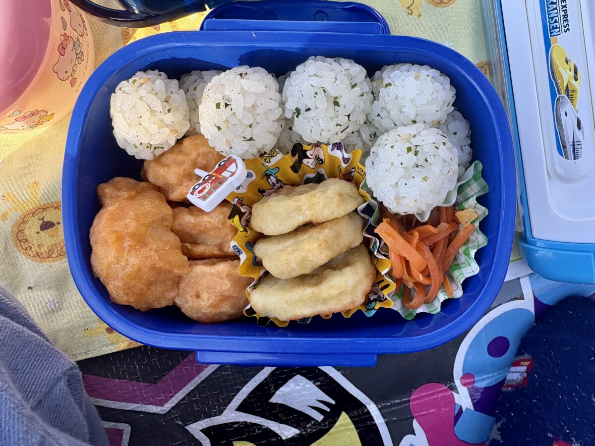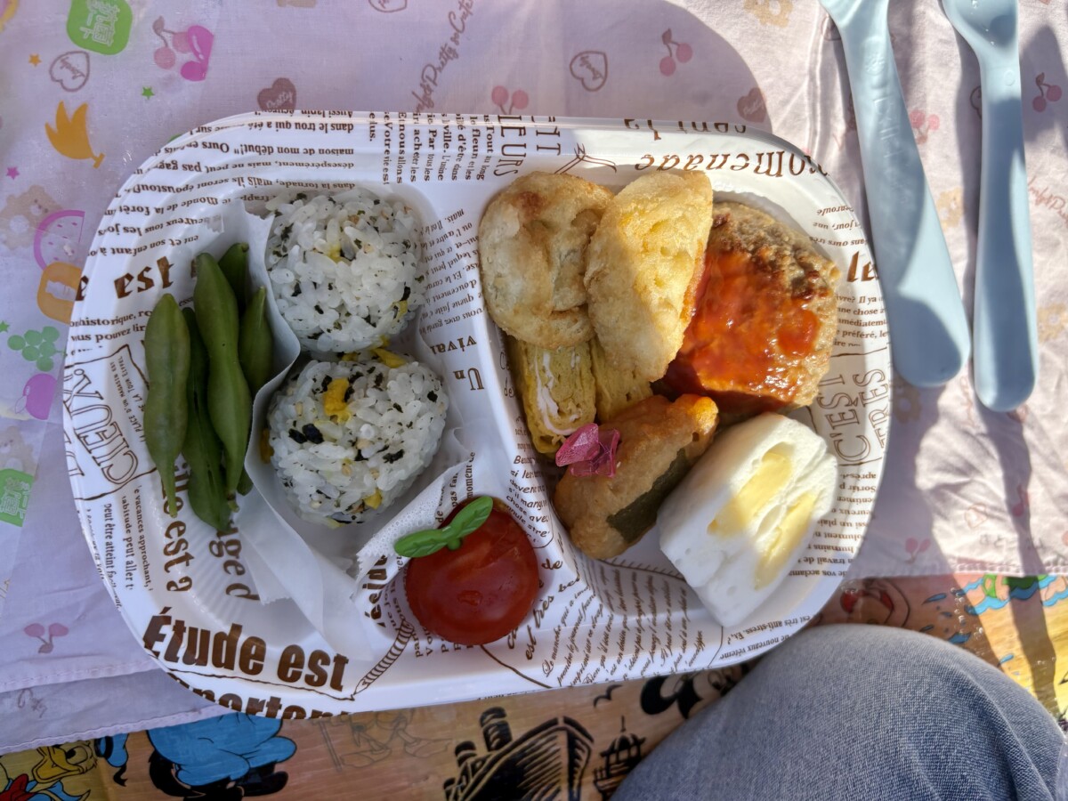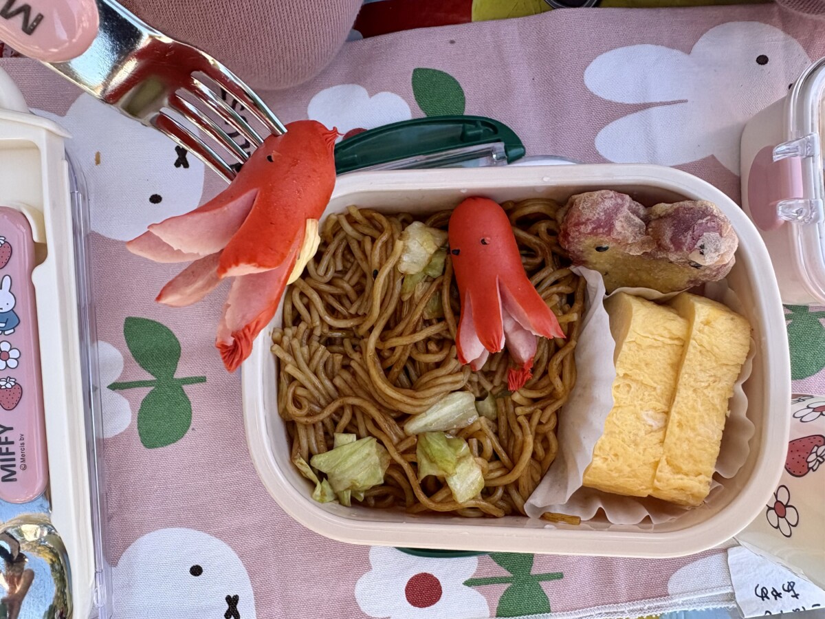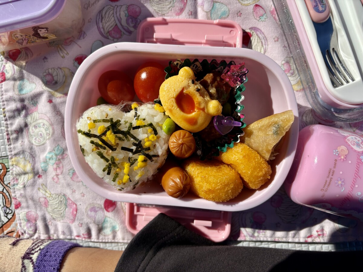 愛情たっぷりの手作り弁当❣️それぞれ大好きなメニューが入っていて、お友だちや先生に嬉しそうに見せながら食べていました😋そしてお弁当と一緒におやつも♡LRTに乗ったので、宇都宮のご当地おやつ『レモン牛乳タルト』と『いちごパイ』を食べました⭐️