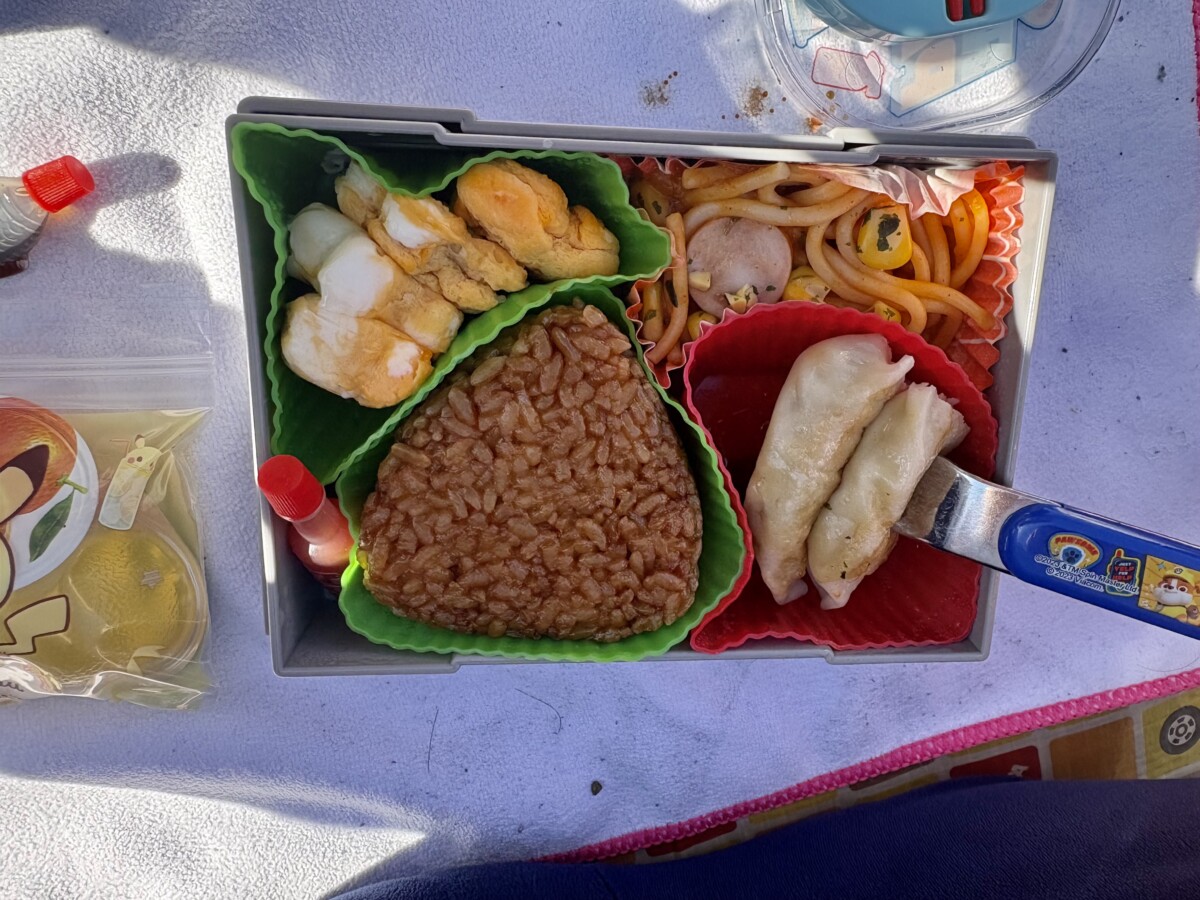 広場で食べたお弁当🍱♡ぽかぽか陽気のもと、美味しくいただきました😘子どもたちが食べたお弁当、保護者の方から「お弁当をブログに載せてほしい!」「いろんなお弁当を見て、参考にしたい!」という要望をいただいていたので、ここでお弁当紹介をします✨「いただきます」をした後に撮ったので、後半の子は食べかけだったり、半分以上食べ終えてしまった子もいますが、それはお許しを〜^ ^