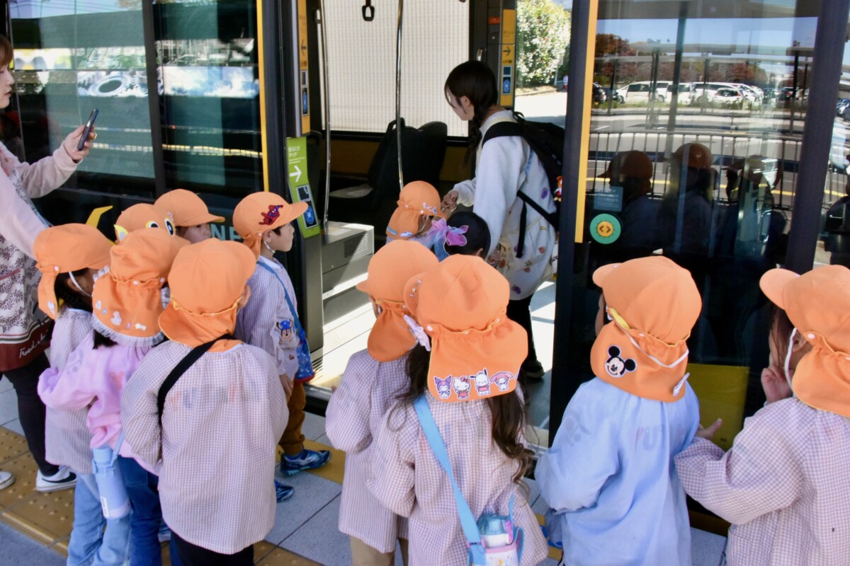 宇都宮駅では、LRTが通過するタイミングを狙っての記念撮影📸✨後ろを振り返りたくなる気持ちを我慢して撮影しました😆撮影後は幼稚園バスに乗って駅東公園へ★