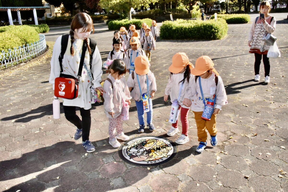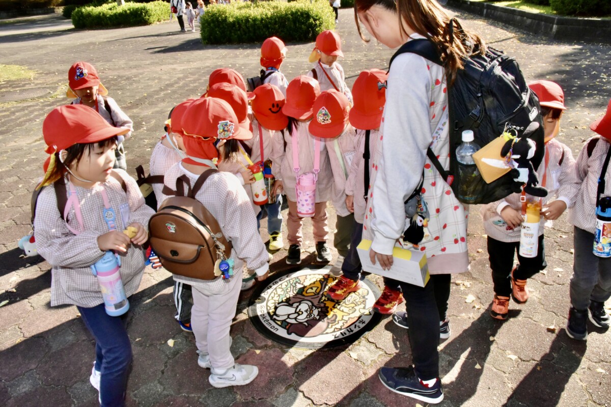 時間ギリギリまで元気いっぱいに遊び回りました🎵栃木をたくさん感じながら楽しい遠足を過ごすことができた年中組の子どもたち。ポケモンマンホールも発見しました✨