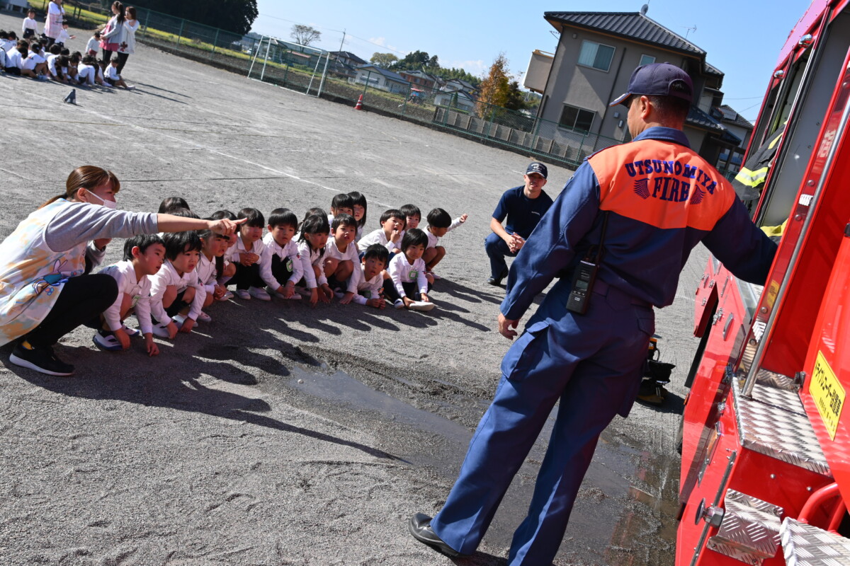 今回の避難訓練は、宇都宮中央消防署から消防士さんが来園し、子どもたちがしっかり避難できるか、訓練の様子を見ていただきました。