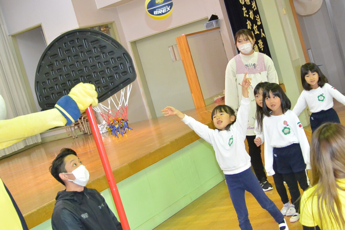 今日は、栃木県のプロバスケットボールチーム『宇都宮ブレックス』の方が来園し、年長組を対象にチアダンス体験とバスケ体験を行いました♪