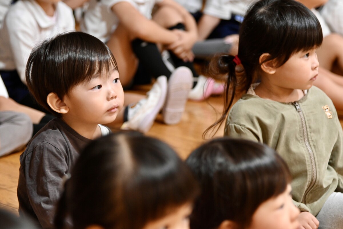 先生たちの出し物は、ゆか先生とりり先生によるパネルシアター『おばけマンション』!去年のこの時期に見たことがある学年もありますが、2回目でもしっかり楽しむことができました⭐️”おばけ”がテーマということで、ホールの電気も暗くして鑑賞🎵観覧の邪魔になってしまうので、フラッシュなしで撮影したものですが、目の前のパネルシアターに釘付けの子どもたちの様子をランダムにどうぞ〜♡