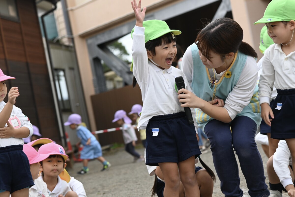 ひよこ組より1つ大きい年少組は、右手を高らかに挙げながら、大きな声で「はーい!」とお返事⭐️気合十分です!